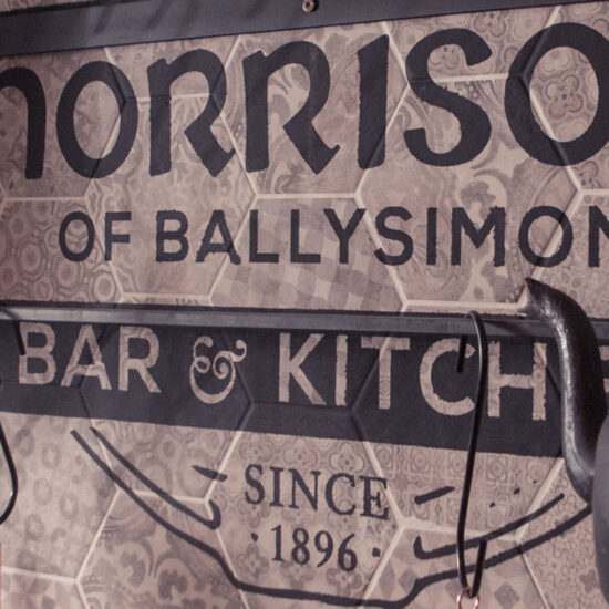 Hexagonal cement tiles and wood-effect stoneware in a historic Irish pub