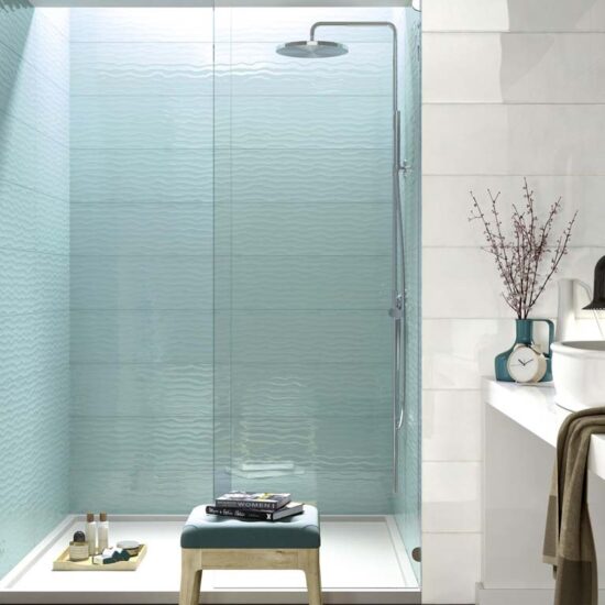 Cladding bathroom walls with colours and textures inspired by traditional majolica ware