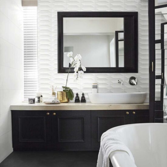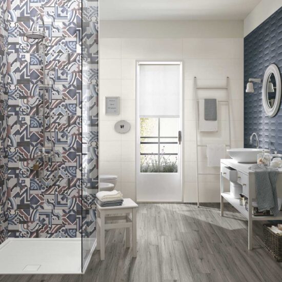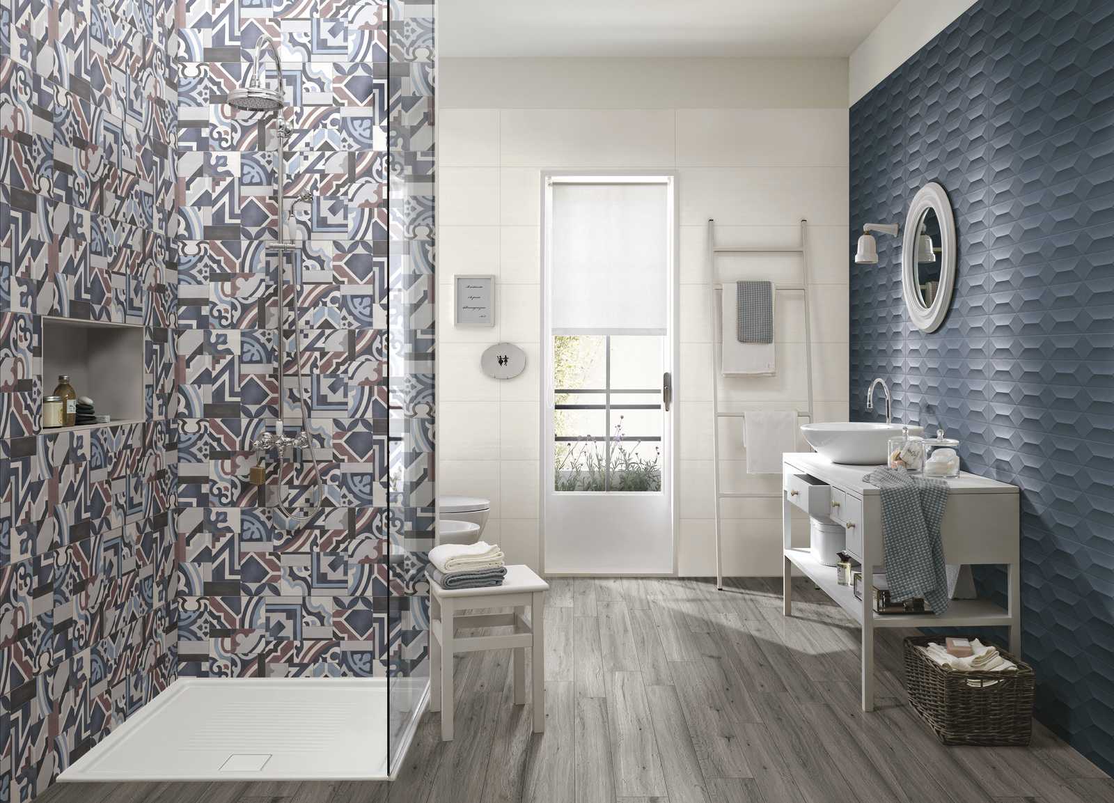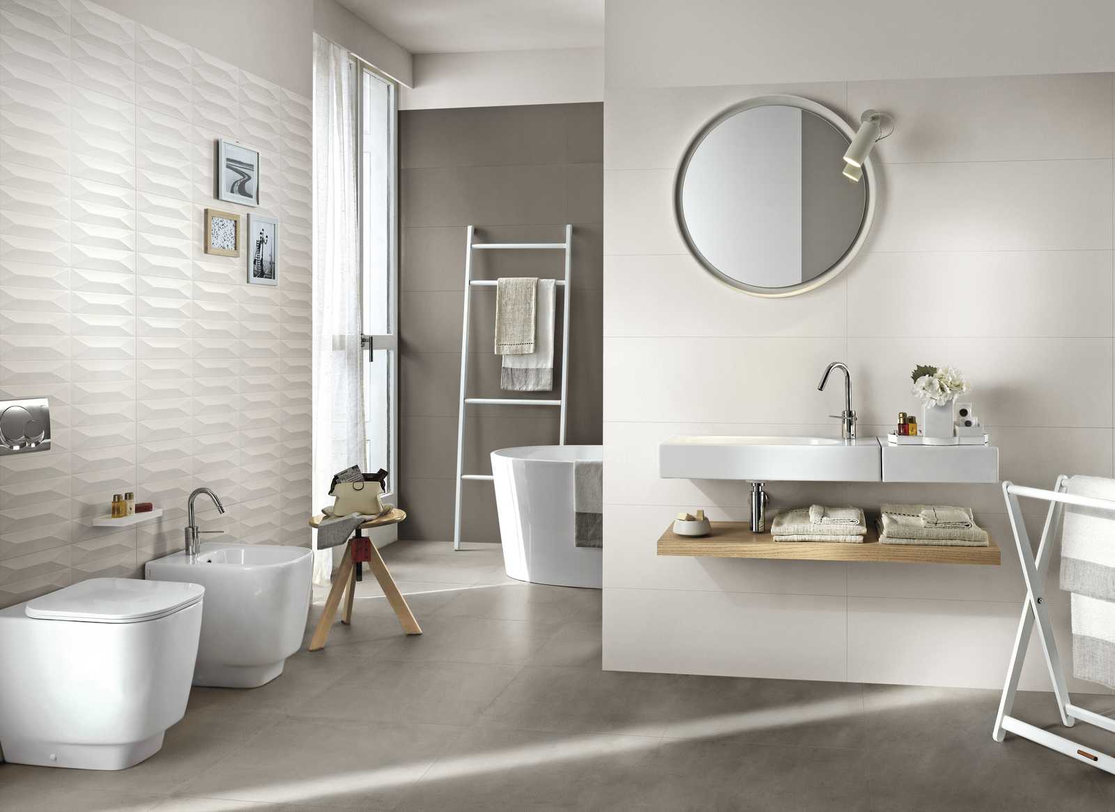 In this article we will concentrate on material looks and the 3D surfaces for bathroom wall tiles, but you can also use the solutions we suggest in the kitchen, living-room and bedroom.
