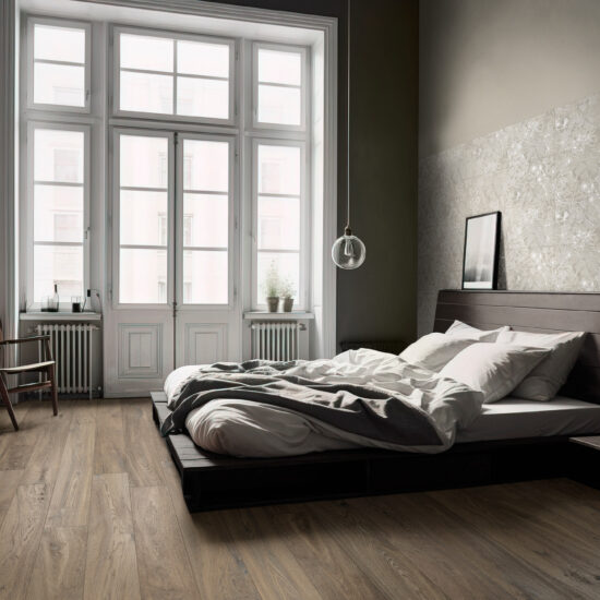 Which is the best wood-effect stoneware color for a modern bedroom? The shade must be chosen with great care, as it can transform the interior’s final look.