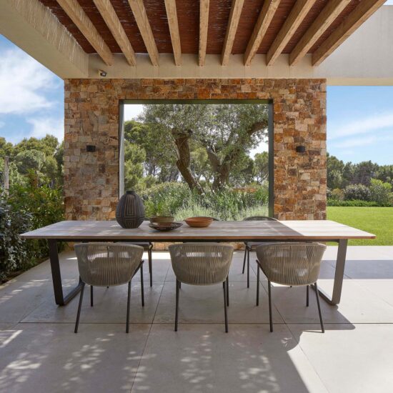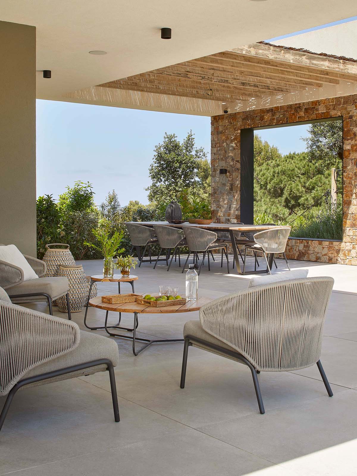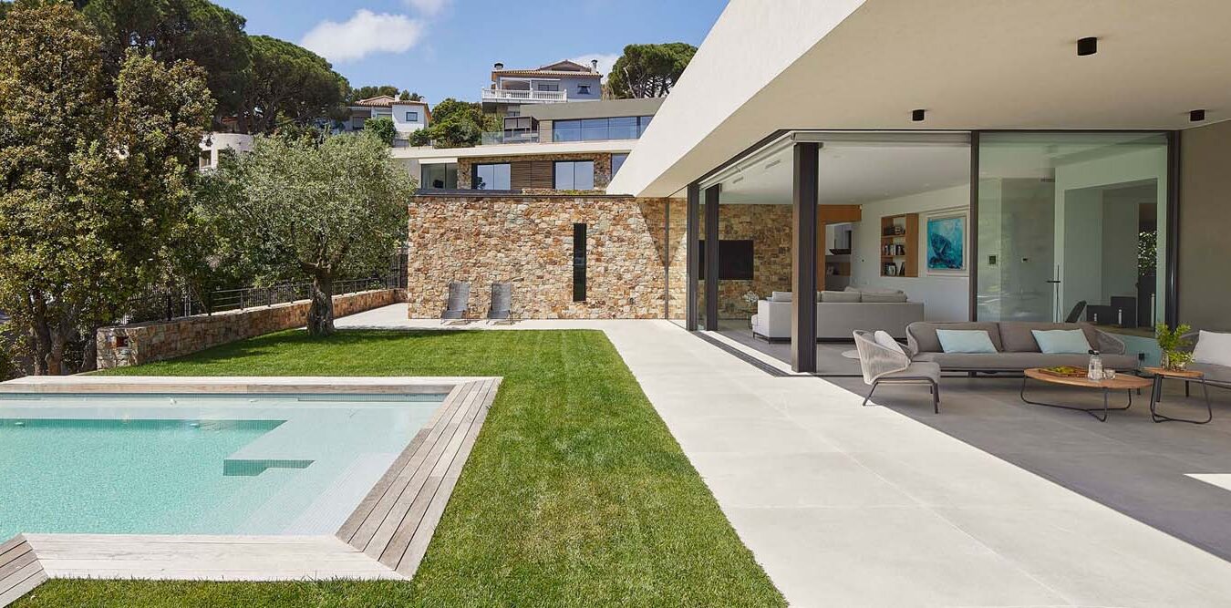 Indoor/outdoor fluidities and materials with a natural air: the house blends into the landscape thanks to Ragno’s Realstone_Rain.