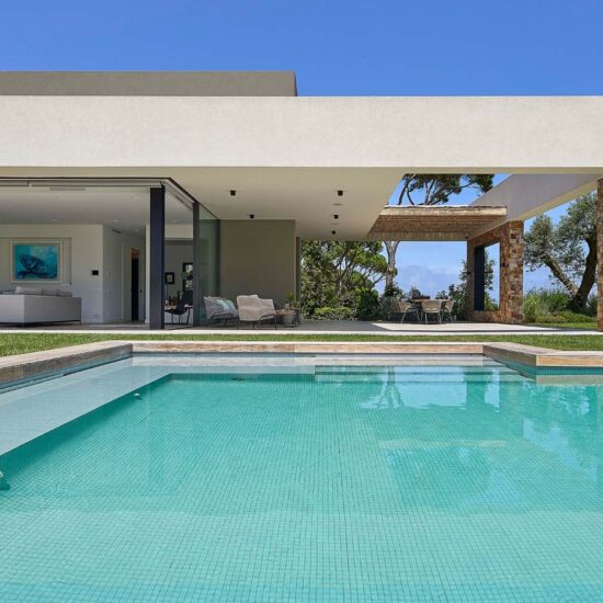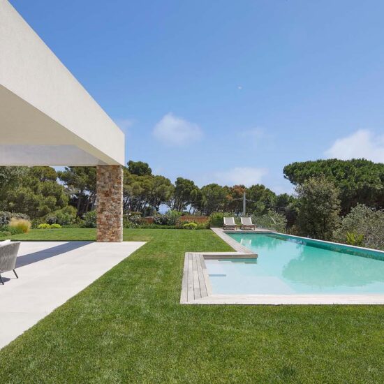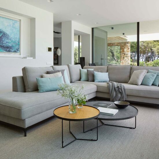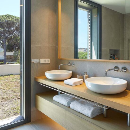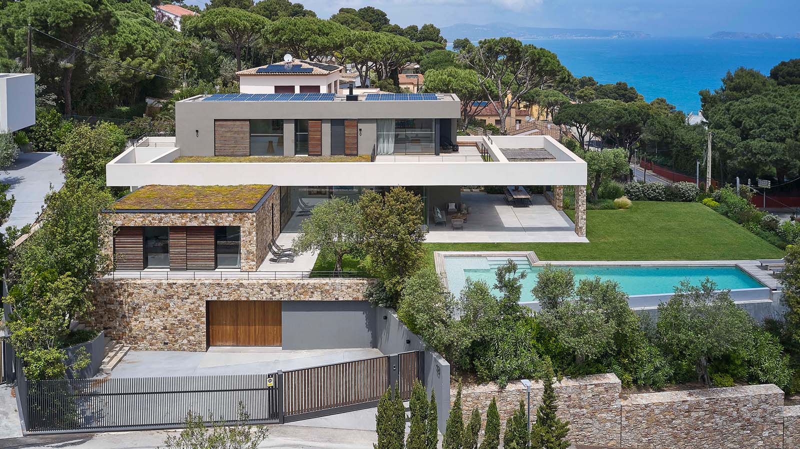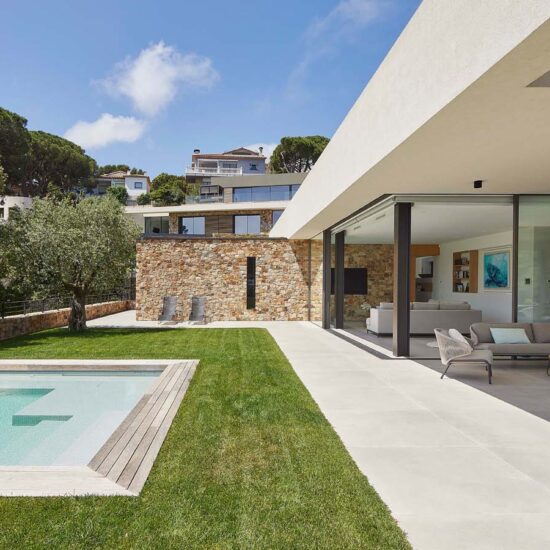 Both homes – which share a modern, minimalist aesthetic – blend perfectly into their surrounding Mediterranean landscape thanks to the use of drystone to finish some parts, matching the earthy colors of nature itself.