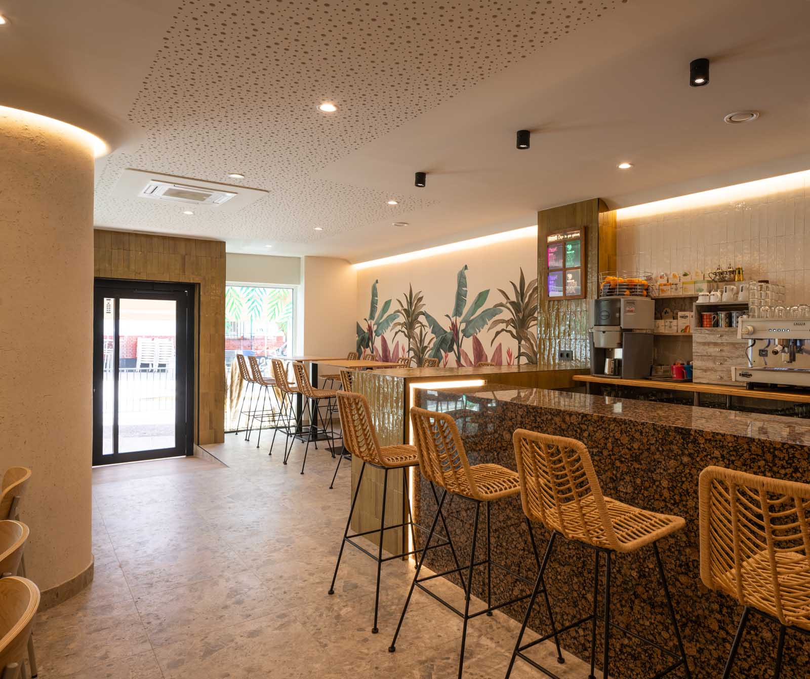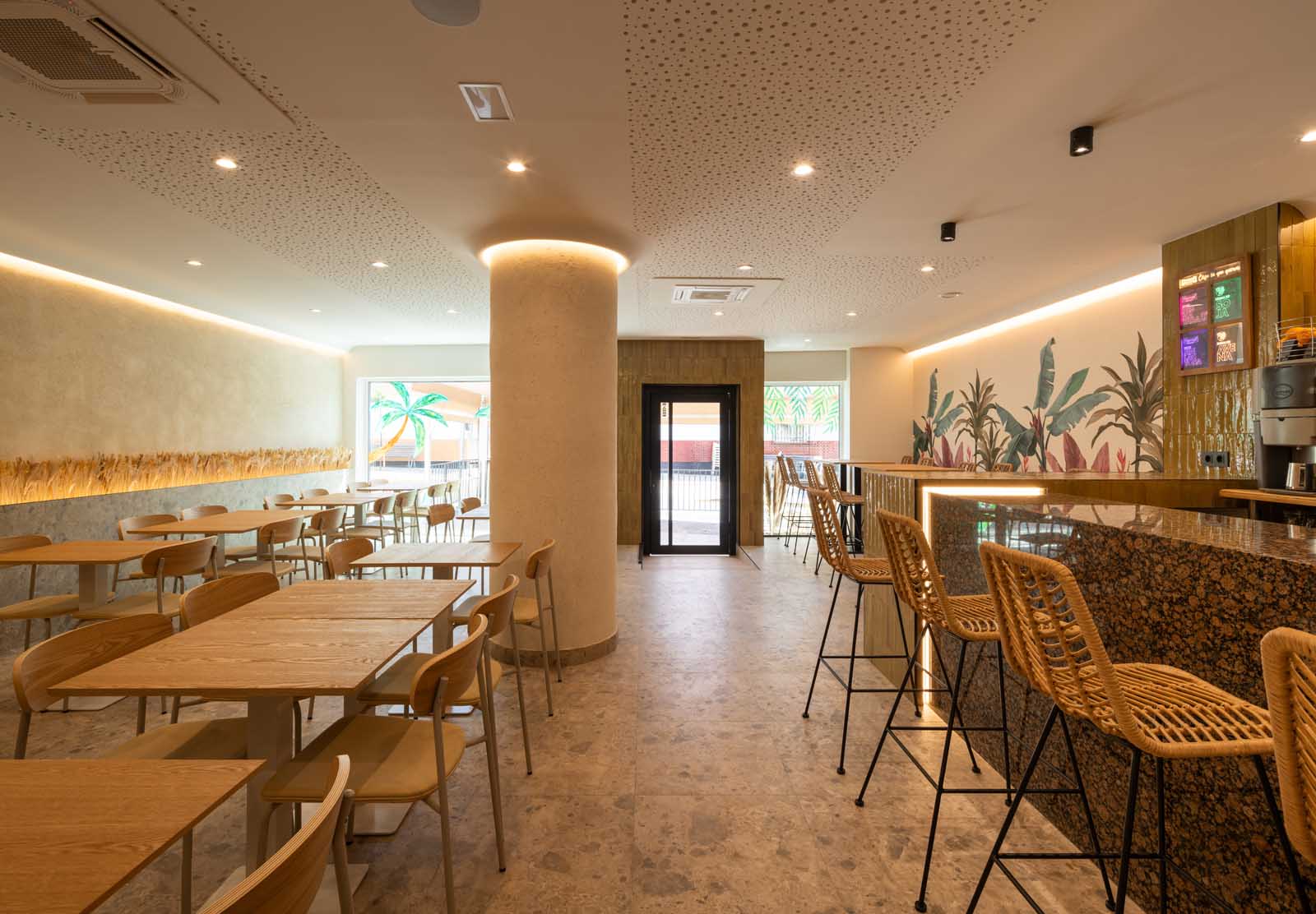 Cafetería Las Palmeras invites you to experience a unique sensory experience, where design and functionality blend to create an unforgettable environment.