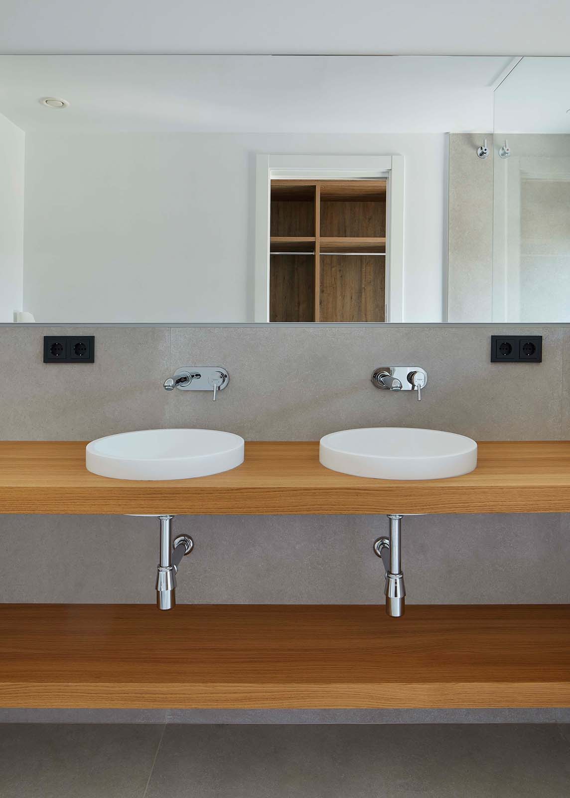 It is not only the windows that have created this continuum with the nature surrounding the villa: among the design and architectural tricks used by the Jané & Font firm, we can immediately note the use of dry stone to clad the exterior of the ground floor – and some strategic walls in the living area – designed to project the earthy shades and colors inside the house. The decision to use the same floor covering for the interior and porch area also played a key role in ensuring continuity between the interior and exterior: here, too, a custom stone-effect porcelain stoneware collection by Ragno Ceramiche in size 120×120 cm, was chosen to evoke the natural hues in the greige tones of stone.