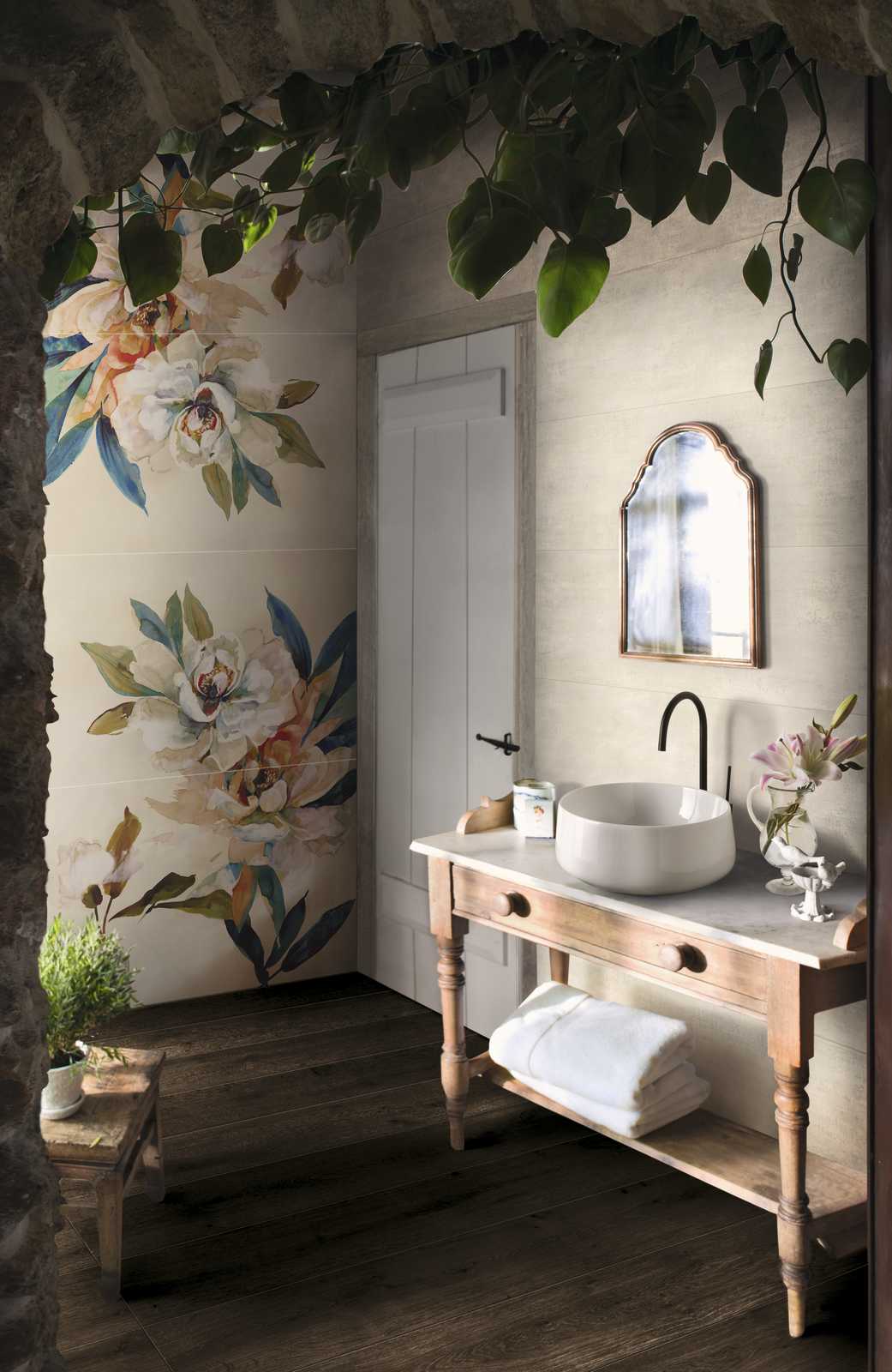 Of course, not everyone is able to live in a skilfully restored period residence, but it still quite possible to design interiors in distressed style with the aid of matching coverings that give the room the same beauty and the same richness of style.