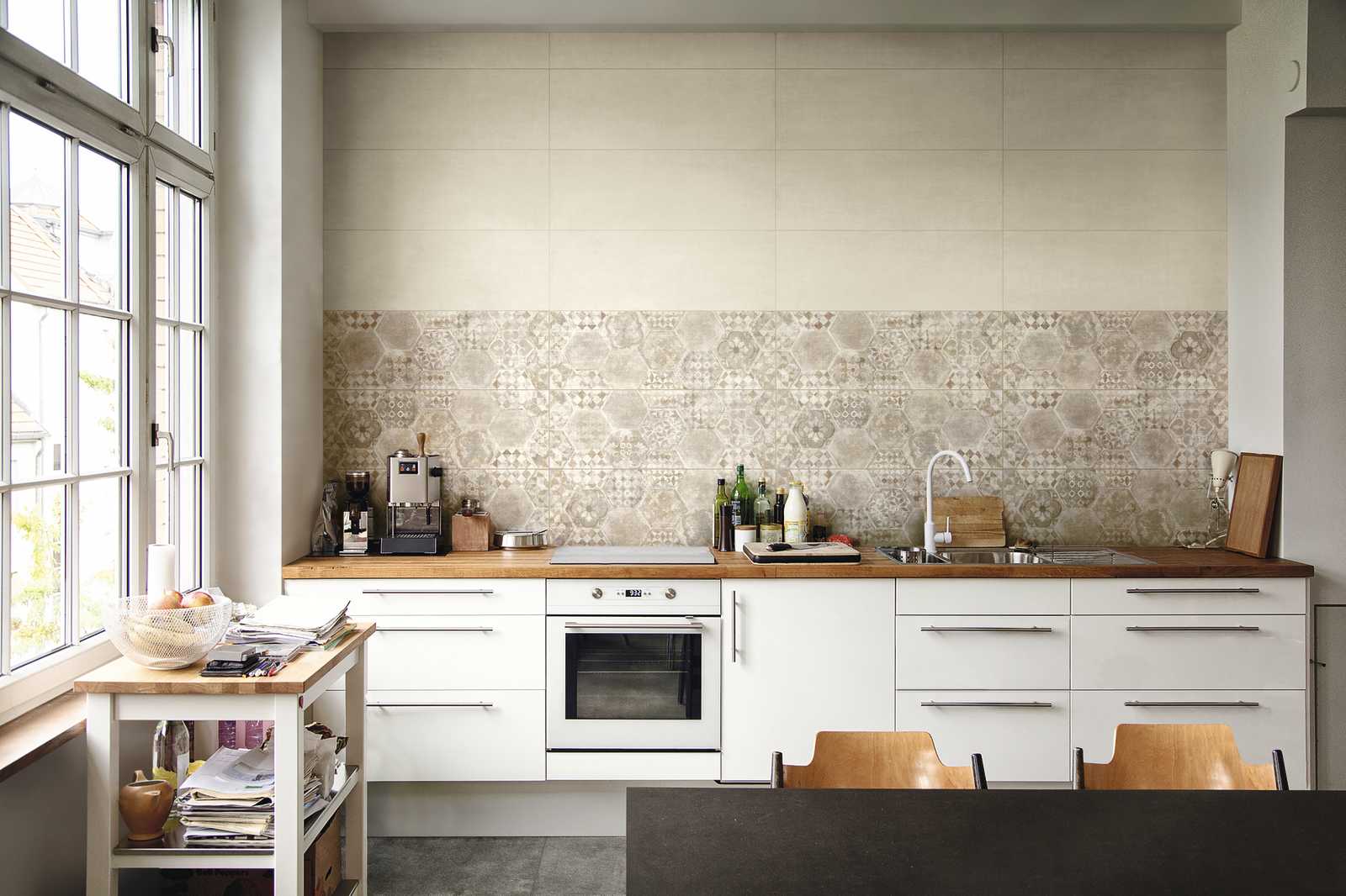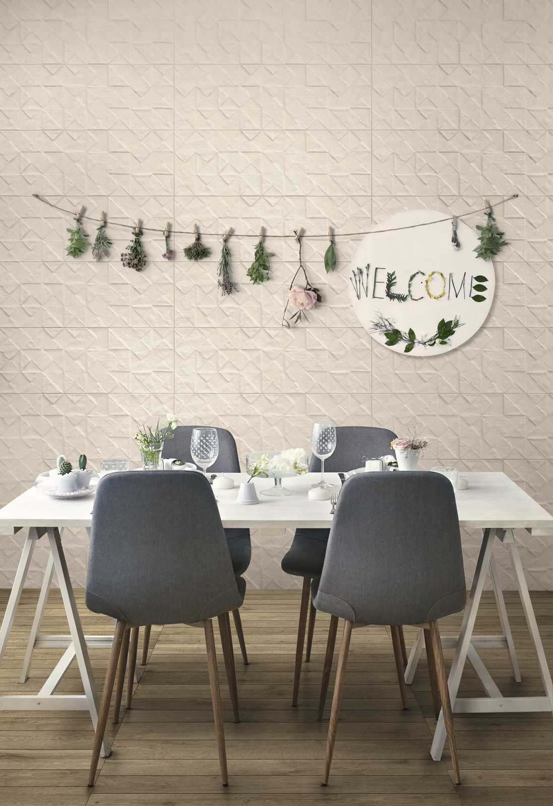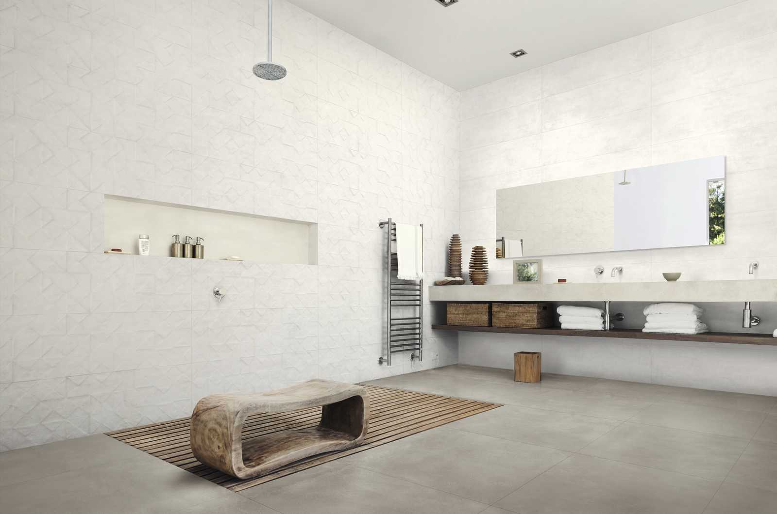 From the choice of the neutral colour assortment to the decorative inputs, from the homage to hand-shaped concrete to a surface painstakingly prepared until perfect: everything in this collection seems to reference the beauty of distressed style interiors. The opportunities for mixing and matching decors and relief tiles, colours and patterns, provide infinite compositional potentials for creating homes and interiors with an eclectic, timeless mood.
