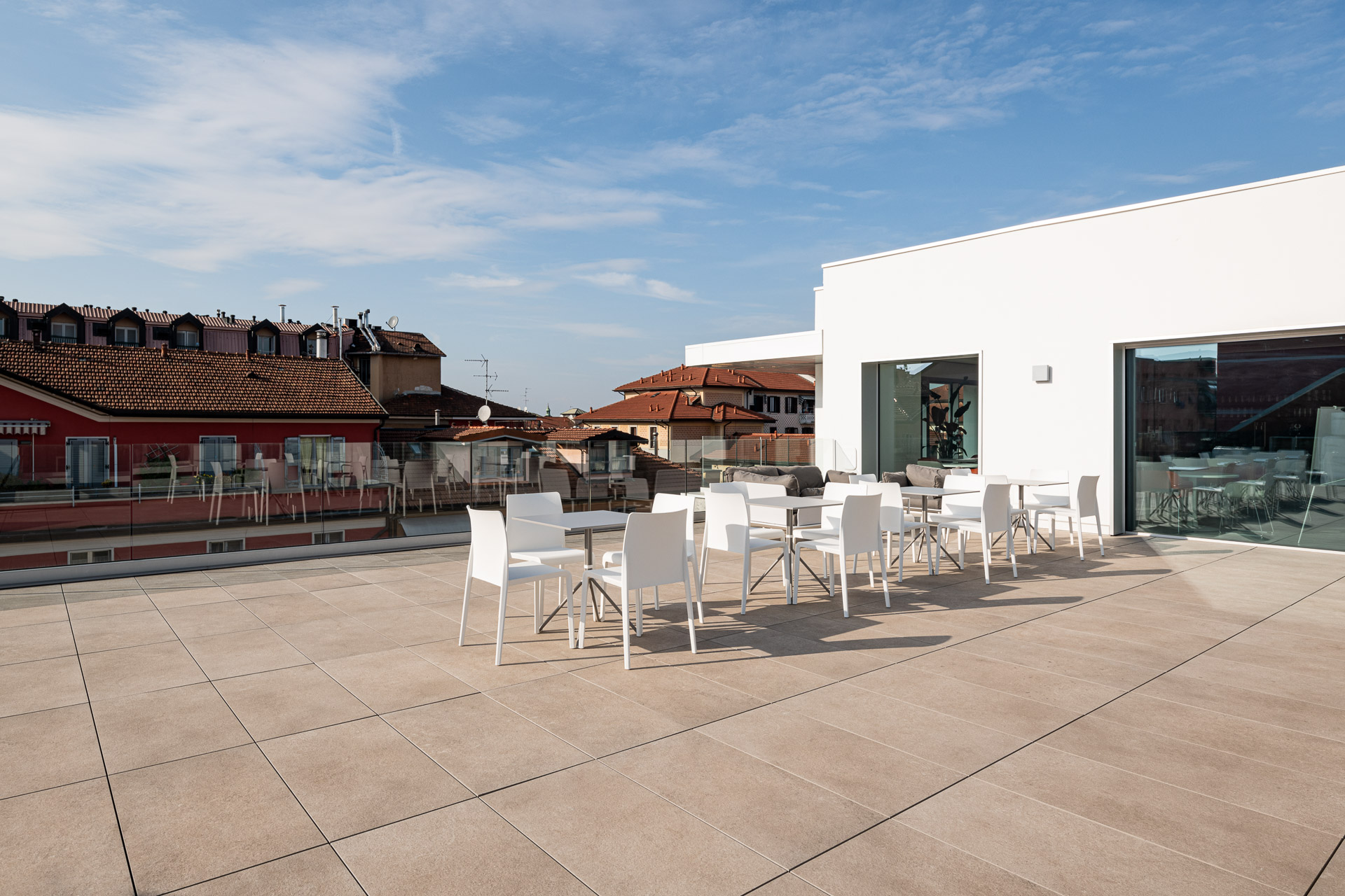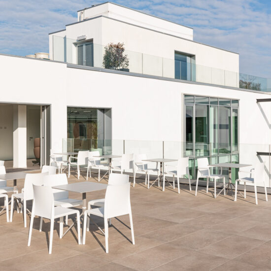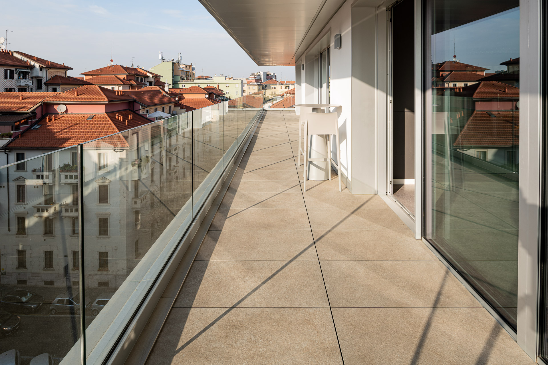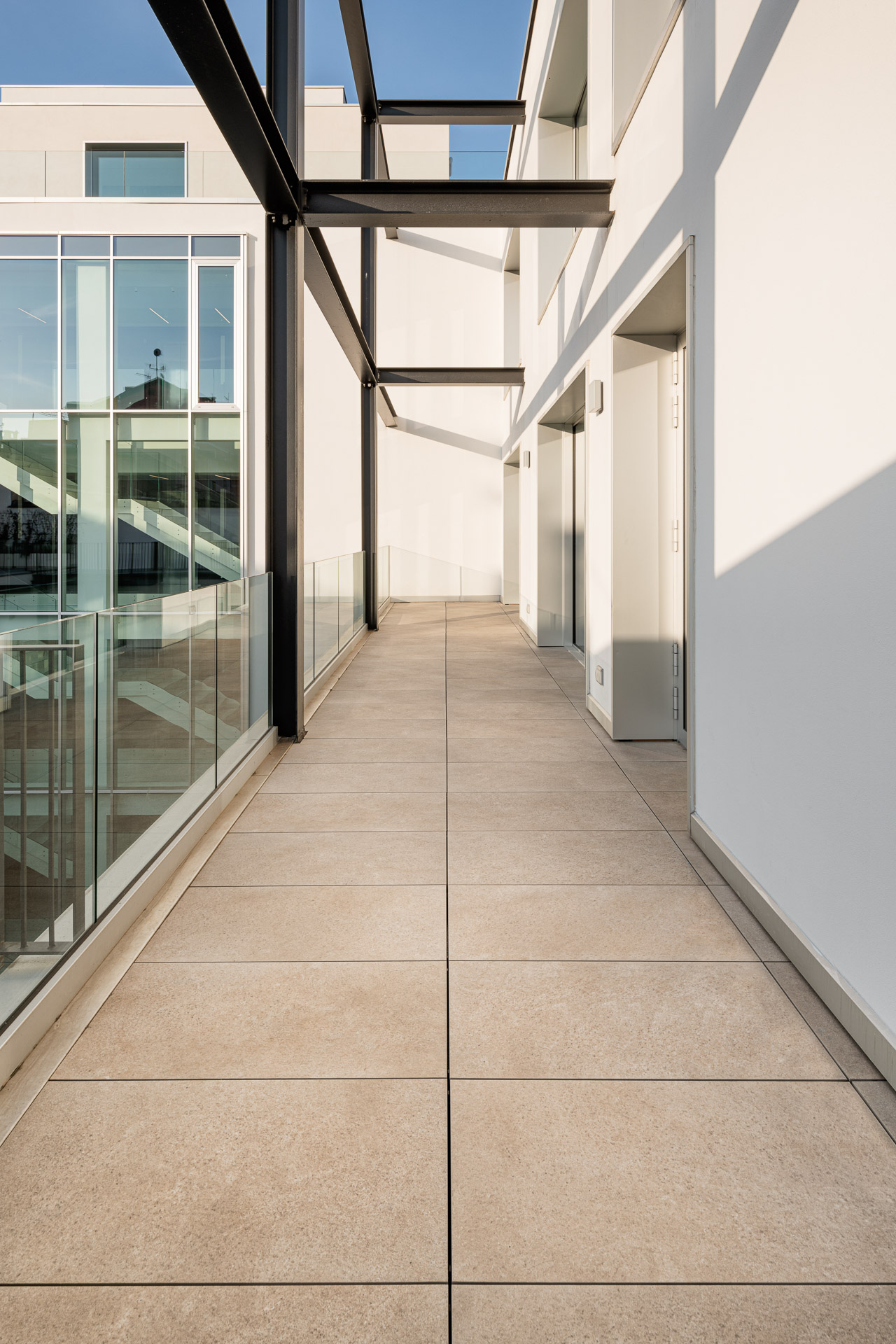 The use of Ragno porcelain stoneware for the facade cladding boosts the building’s energy efficiency and soundproofing, as well as resolving issues of damp and atmospheric aggression, while guaranteeing outstanding comfort in the interior.