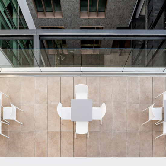 Ragno played a crucial role in this project, including the use of stone-effect porcelain stoneware slabs to clad the external facade with a ventilated wall system, which replaced the entire perimeter envelope to upgrade the building’s energy efficiency and sound insulation.