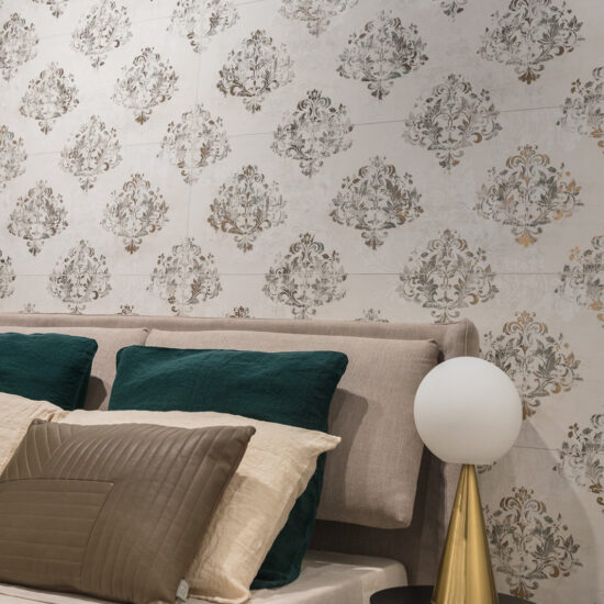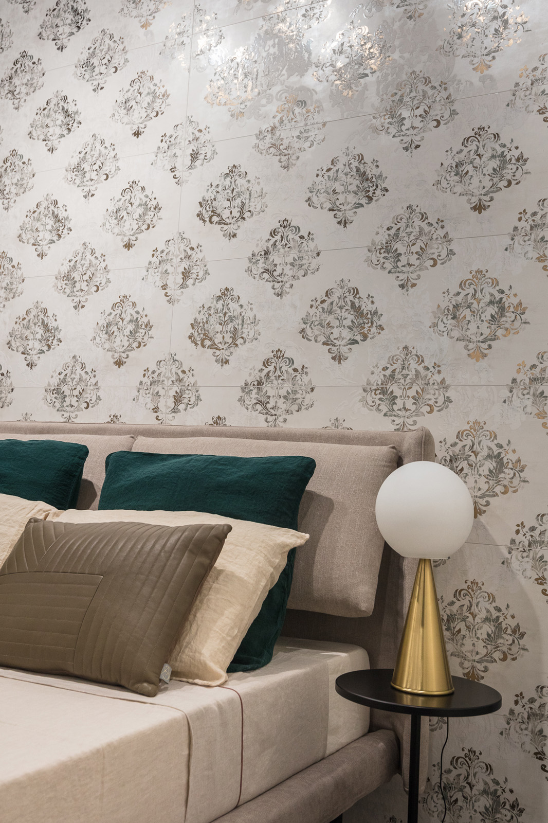 The relief texture of the three-dimensional Bee and Wall structures (respectively diamond and brick-shaped) thus becomes a tool to get to know the material that is as important as visual recognition of the botanical or damask theme of the Tropicana and Venezia decorations, which are all available in the collection.