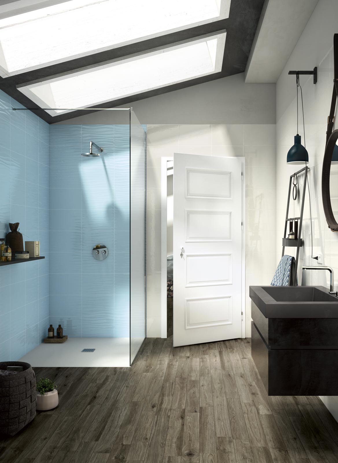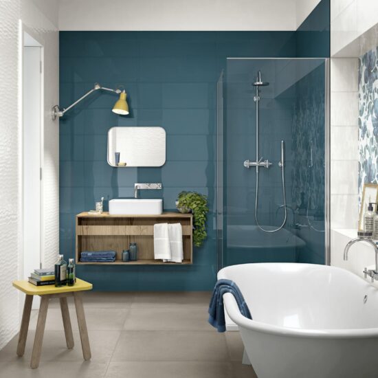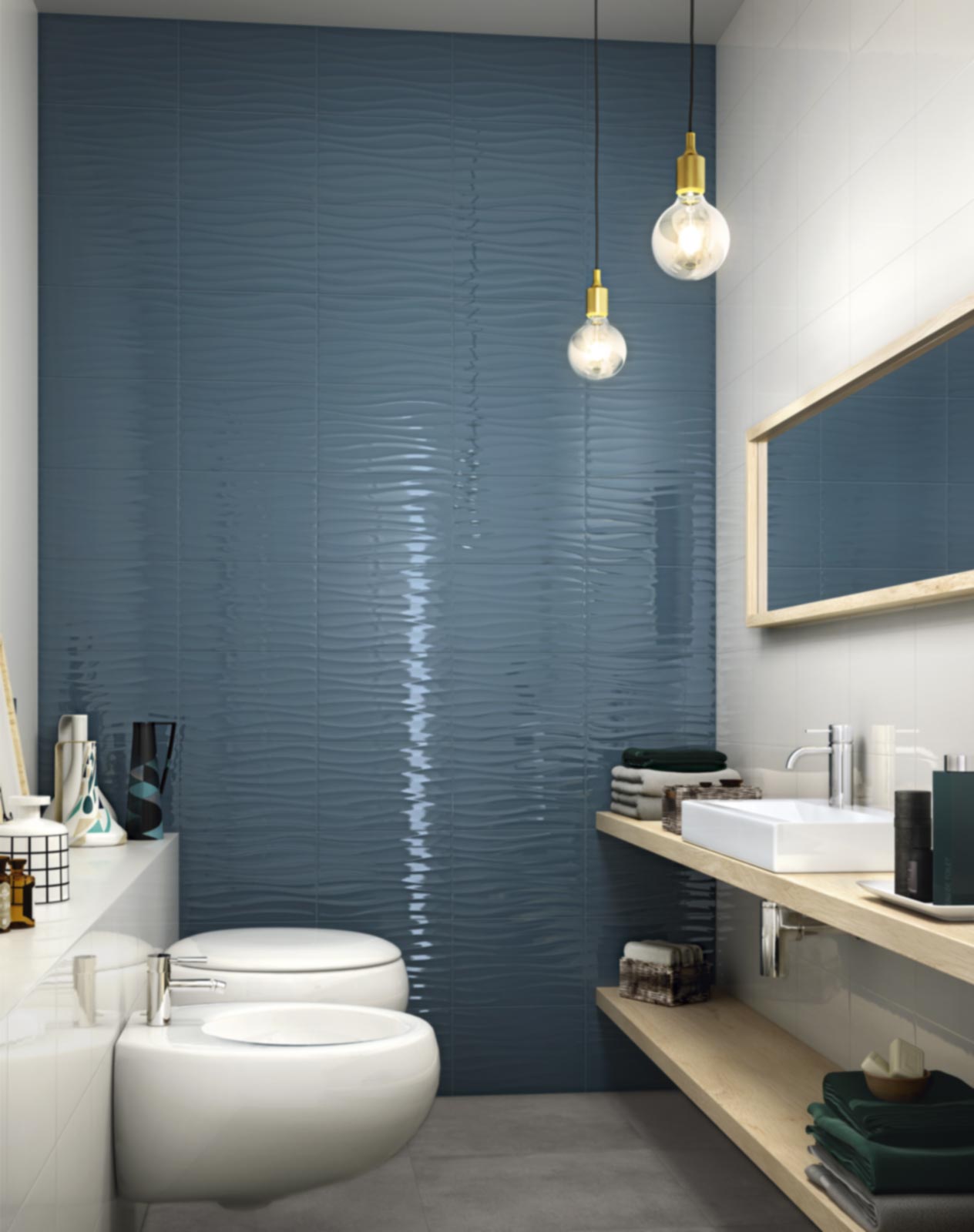 People often think that finishing the walls of a bathroom in a modern, trendy way inevitably means choosing neutral shades and large-sized tiles. However, there is also a trend for decorating the contemporary bathroom with bright colours and textures, making imaginative use of light and medium-sized majolica tiles.