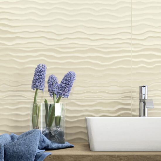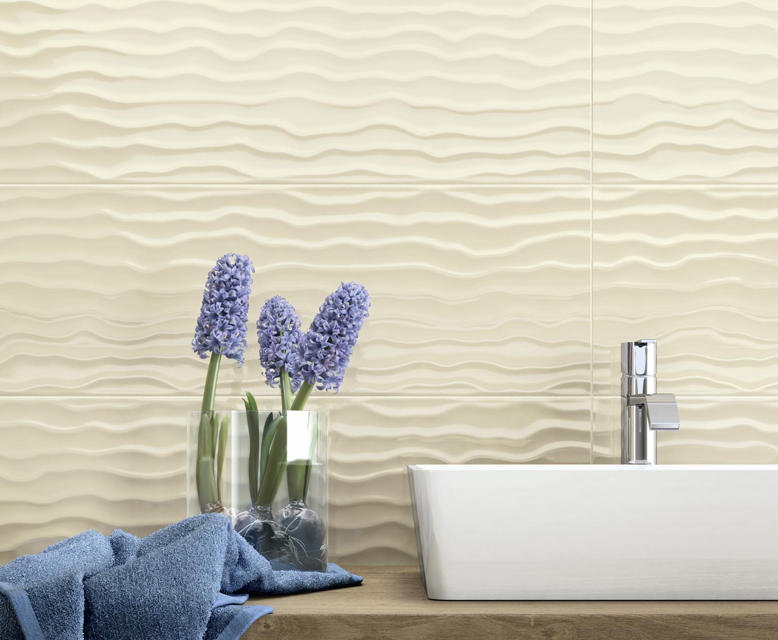 The six colours of the Energy Collection, in the single size of 25 x 38 cm, give bathroom walls a genuine, tactile, three-dimensional structure. Contrasts are highlighted, and there are two different approaches available when designing the wall covering: the various vertical surfaces can be underlined, or textures and colours can be used to emphasise the roles of specific architectural features.