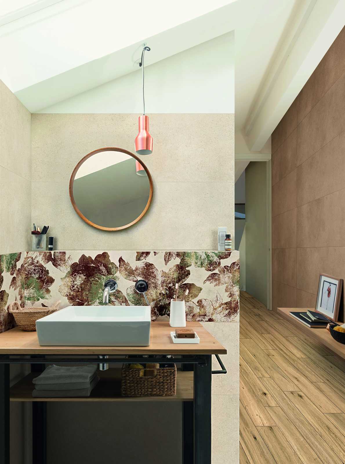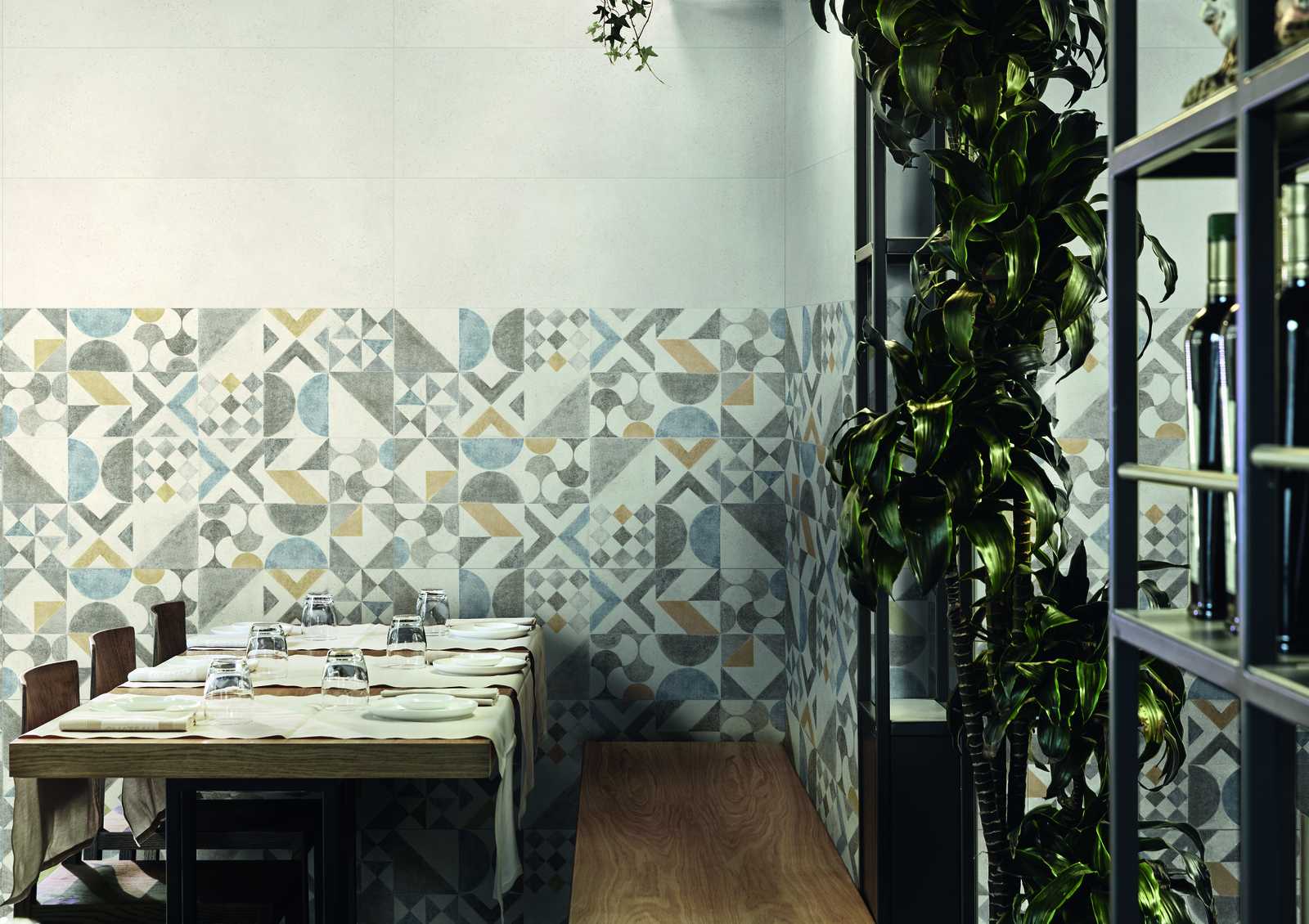 The Arena and Class three-dimensional structures express the earthy granular consistency of crushed brick, the former apparently raked into ridges and the latter featuring hexagonal patterning. Caleido, Opera and Botanico, on the other hand, reflect the surface's response to the passage of time, as the ornamental motifs, including fashionable geometrical and floral patterns, are veiled by a light patina.