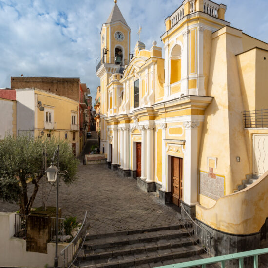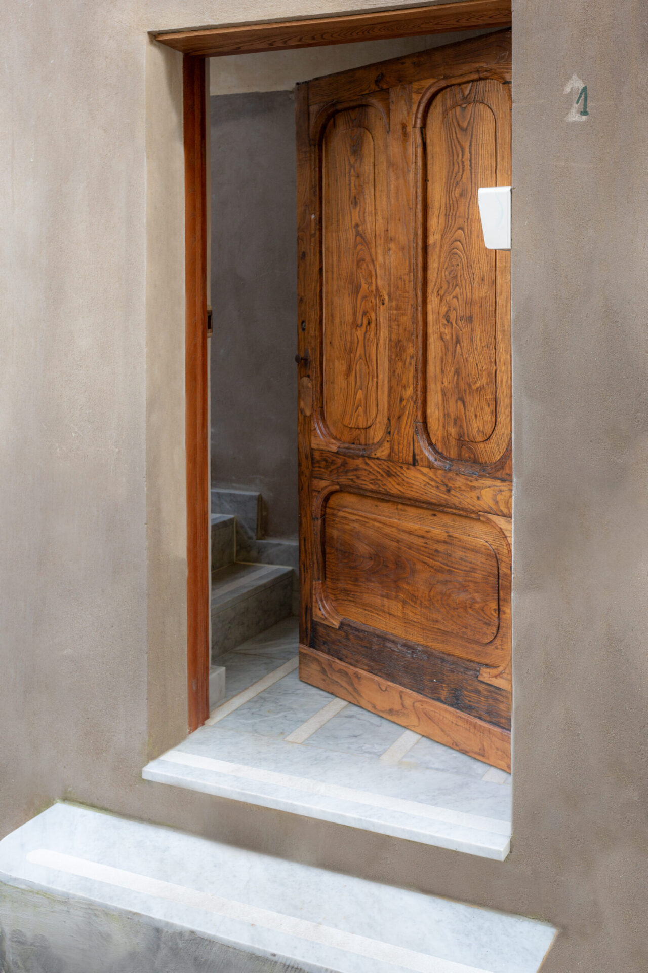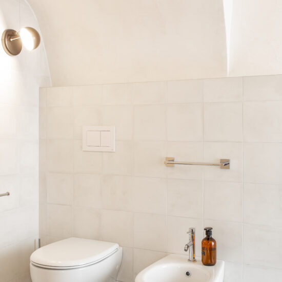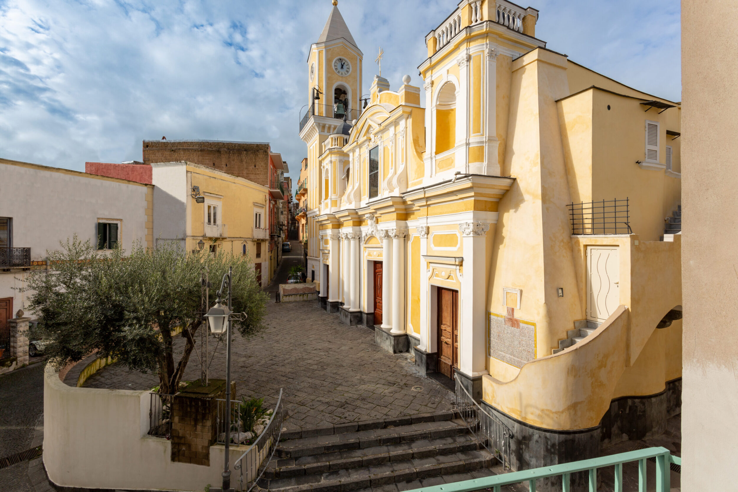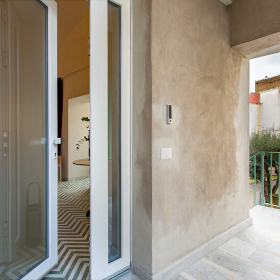 The studio apartment – intended for use as a holiday let – is located in an old building in the historic town centre of Monte di Procida just outside Naples, and its renovation has conserved its antique features, such as the splendid ribbed vault and the original front door, skilfully restored by a local craftsman.