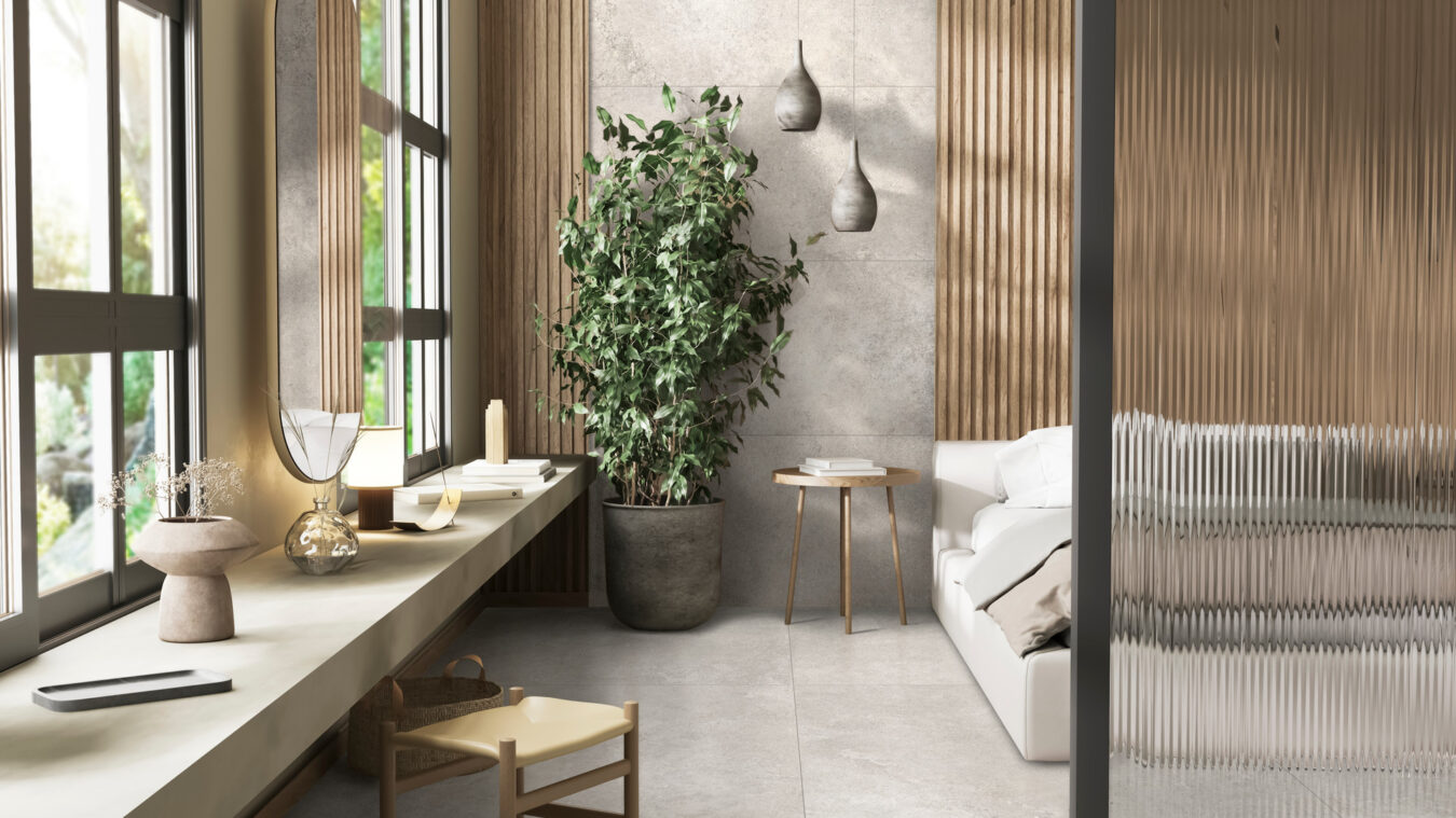 A wide, versatile collection is presented in four soft shades available in a vast array of sizes – from 120×120 to 20×20 cm – and natural or structured surfaces, for completely coordinated indoor & outdoor projects.
