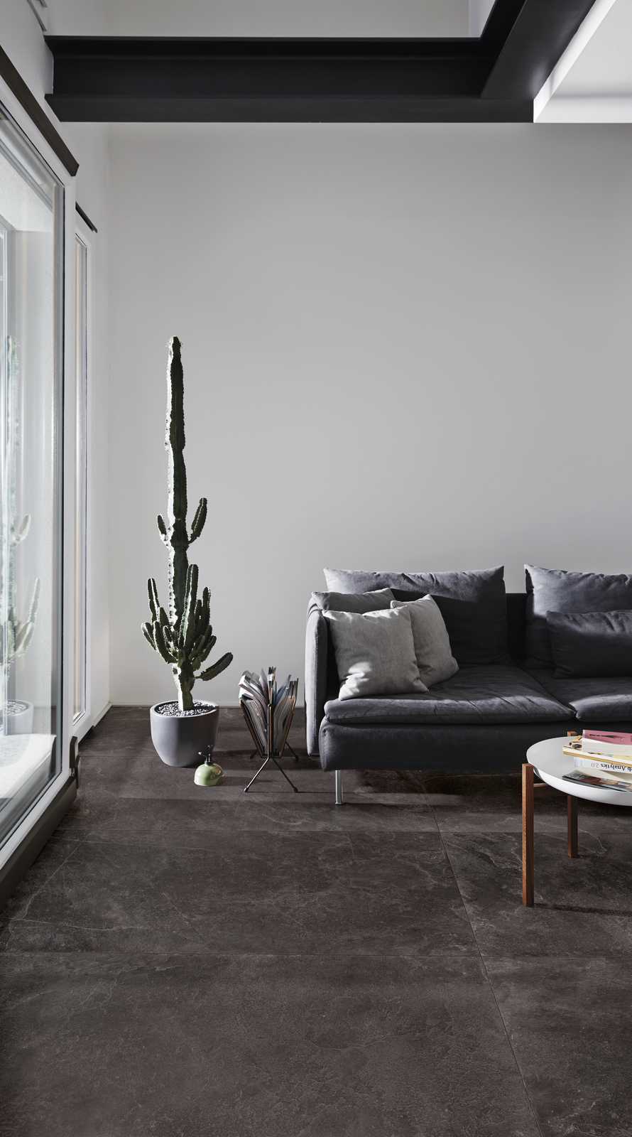 Colours, finishes and furnishing styles that perfectly dialogue with Ragno’s Realstone_Slate porcelain stoneware