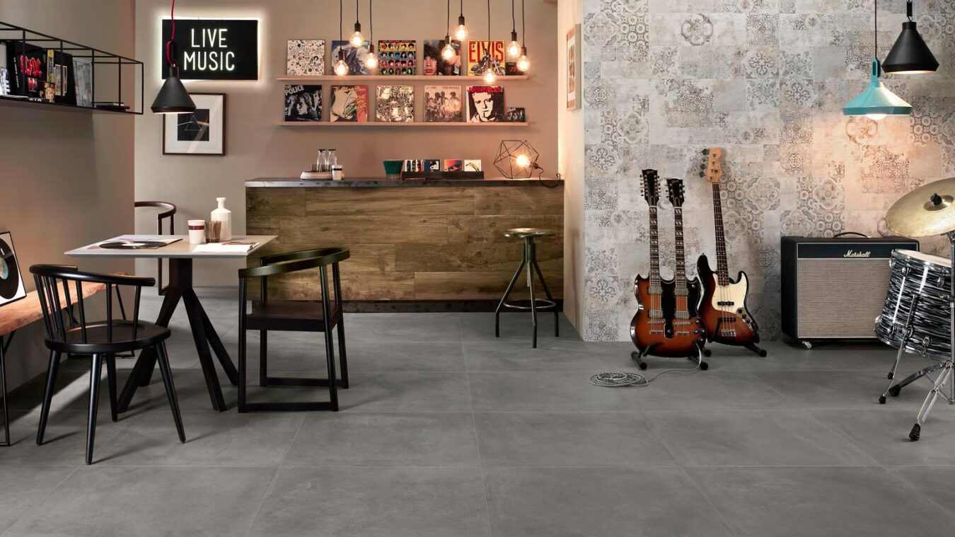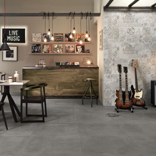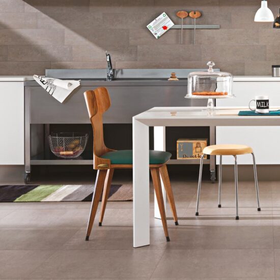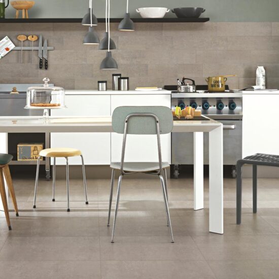When choosing tiles for your modern kitchen with an industrial style, you can take inspiration from the raw surfaces of the concrete and its bare simplicity. In Ragno’s Boom and Concept collections of concrete-effect porcelain stoneware tiles, you can find solid colours, mosaic and matching decorated tiles.