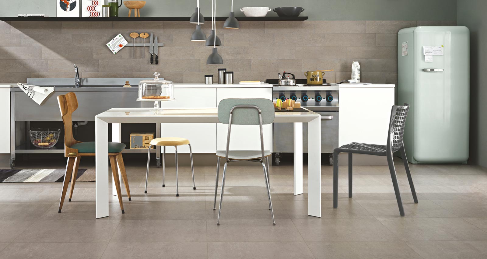 Tiles for furnishing a modern kitchen with a clean, essential design