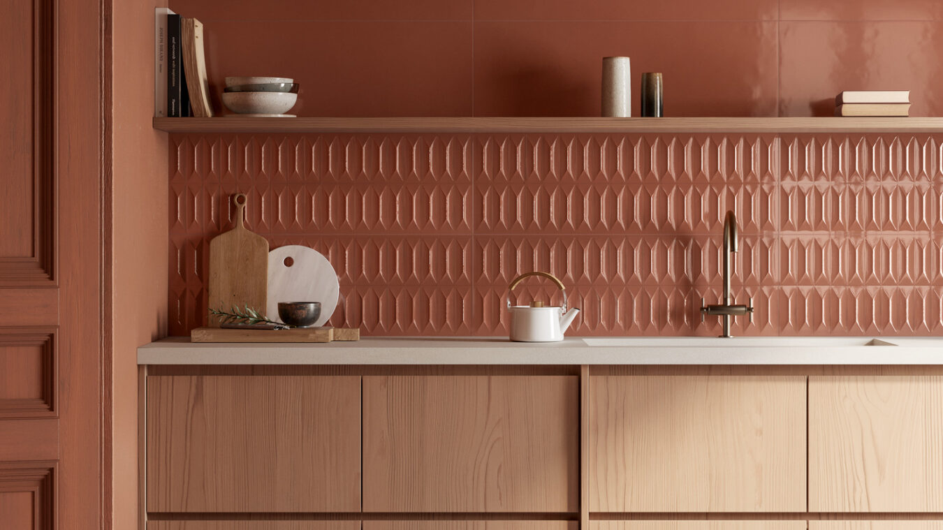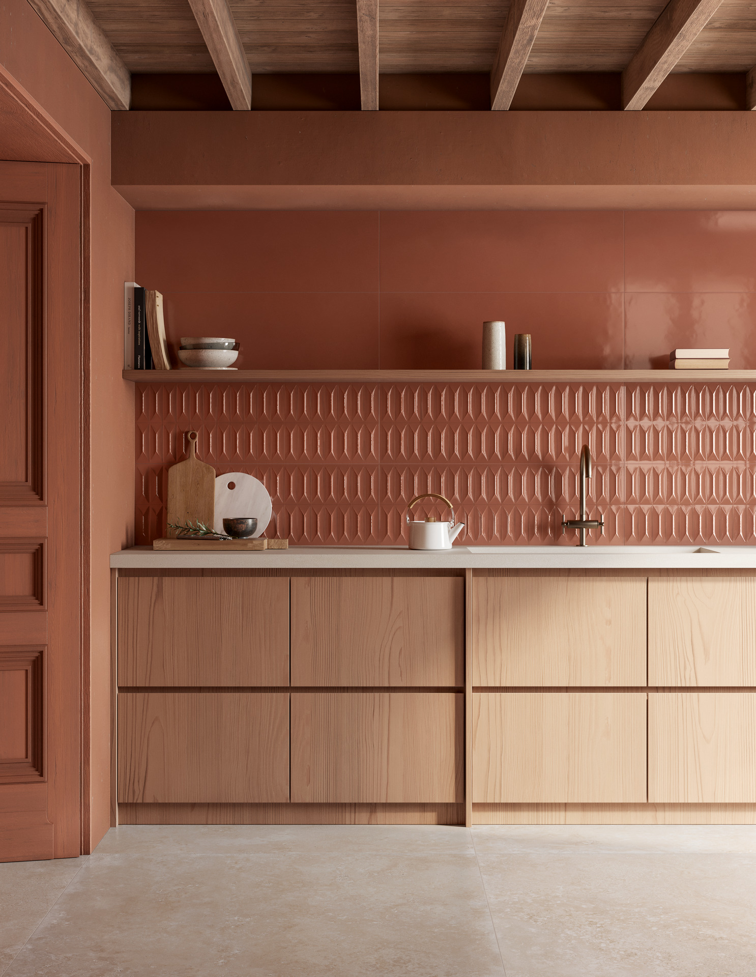We wanted to start from these glossy volumes and their deep hues to rediscover a local tradition by making it current and suitable for residential use in the bathroom, kitchen and living areas.