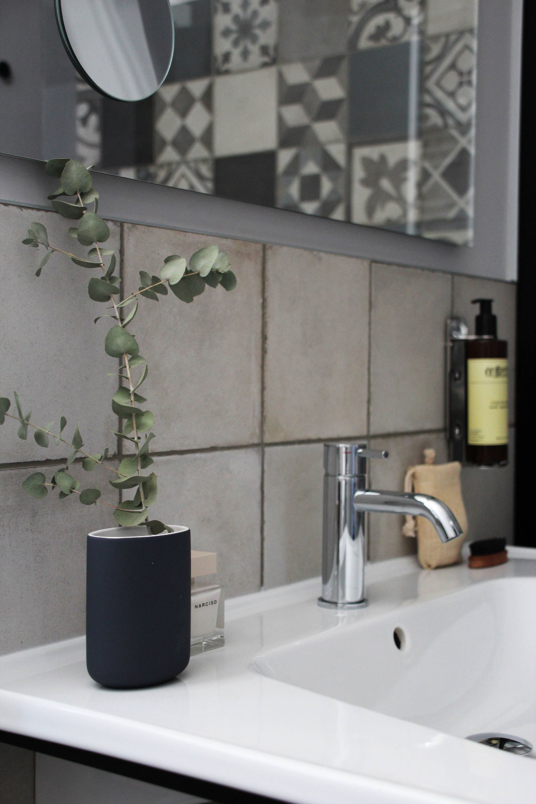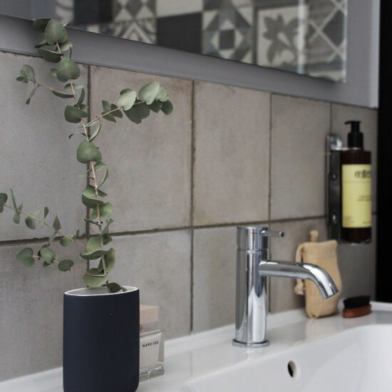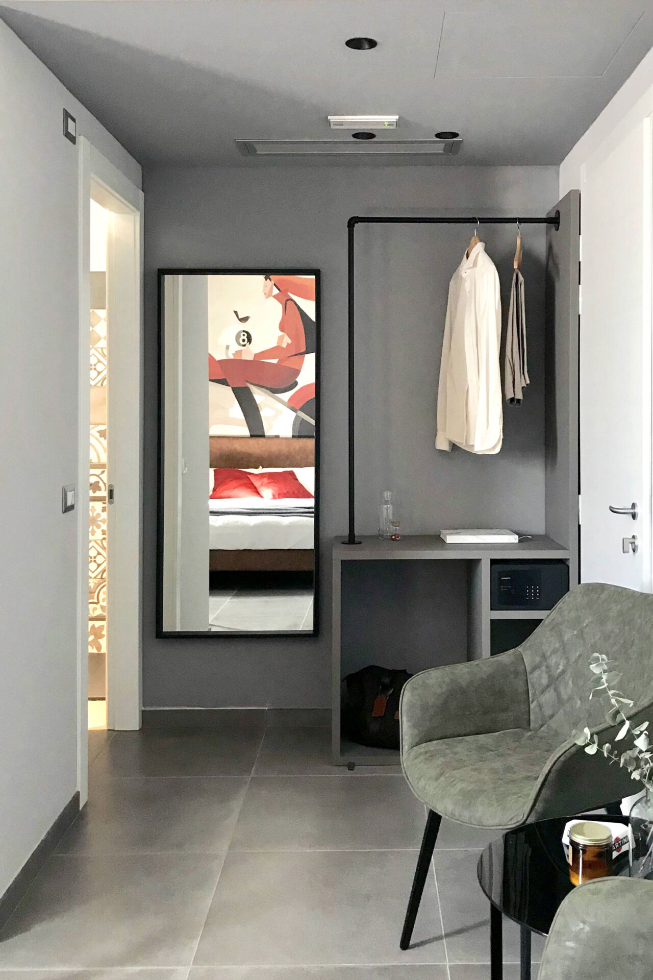 In the bathrooms, places of intimacy clearly distinct from the hotel's rooms themselves, the need was felt for something that, while different, would still harmonise with and complement the rest of the design scheme. The highly decorative Ottocento collection by Ragno seems tailor-made for creating interiors of character by rediscovering geometric motifs popular in the past. The shower alcove, in particular, is lined throughout with 20×20 cm tiles in a single texture but with different colours and patterns: Talco, Pomice, Basalto and Cobalto on the one hand and guilloche patterns, lines and geometrical forms on the other.