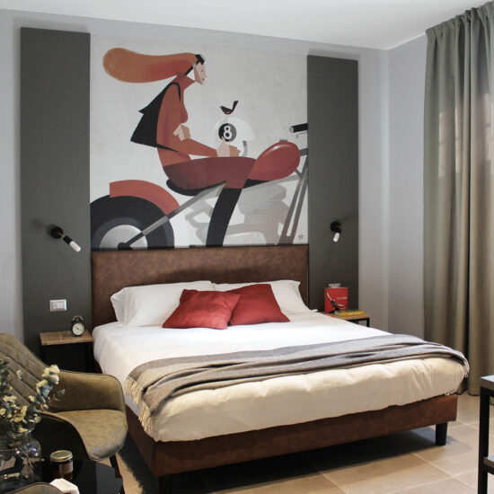 As luck will have it, this collector owns a hotel a few kilometres from Piacenza, in need of some loving care to provide it with a modern freshness still respectful of the past, and enable it to welcome, conserve and tell new stories.