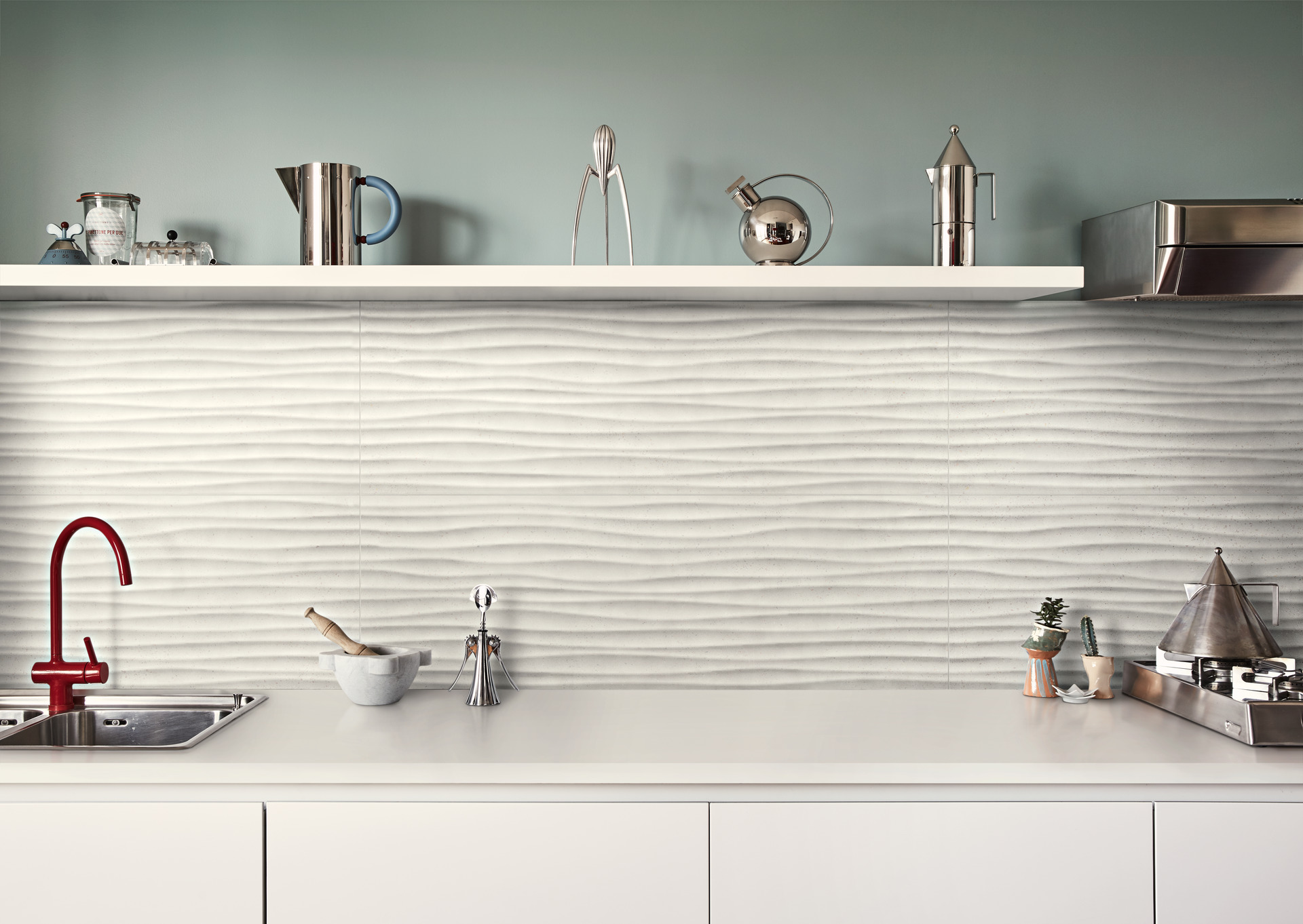 Those who not only appreciate visual effects, but also the inestimable communicative value of touch, will love the delicately coated white in the Tempera collection and that of the resin-effect Flex ceramic with its concrete, contemporary and potentially coordinated look, contrasting with the accent colours available in the catalogue.