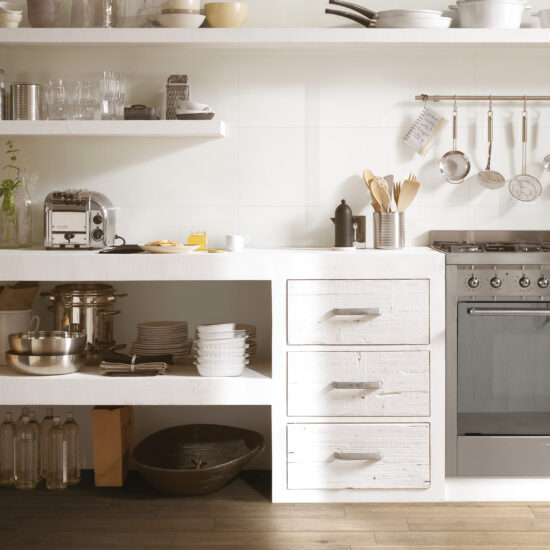 White transposed onto pure material can follow two different paths starting from a single inspiration: a reference to the past. On the one hand, the Cocciopesto collection ceramic tiles interpret Italy’s distinctive history of craftsmanship on the surface of the 40×120 cm slabs; on the other, the Imperiale and Bistrot collections combine the purity of white with the idea of luxury, preciousness and shine historically associated with marble.