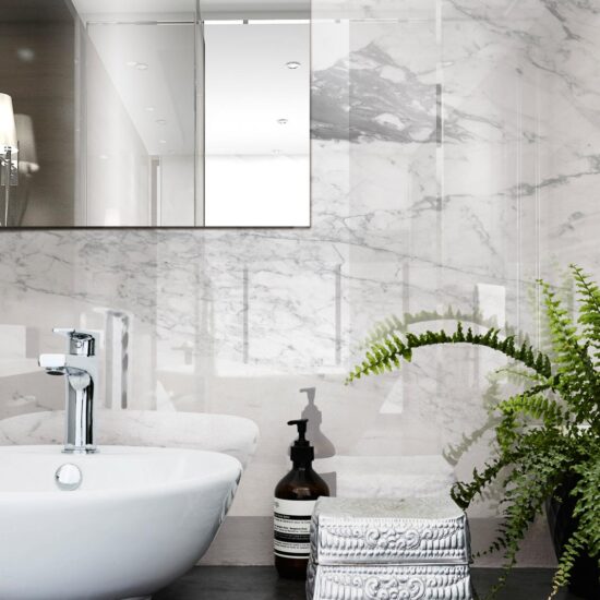 The fact that the slabs – which can be cut and shaped to measure or drilled – are easy to process makes it possible to cover the surface of fixed and mobile furniture with a marble effect, without compromising the strength and technological performance of the material in any way, but enhancing its value and convenience.
