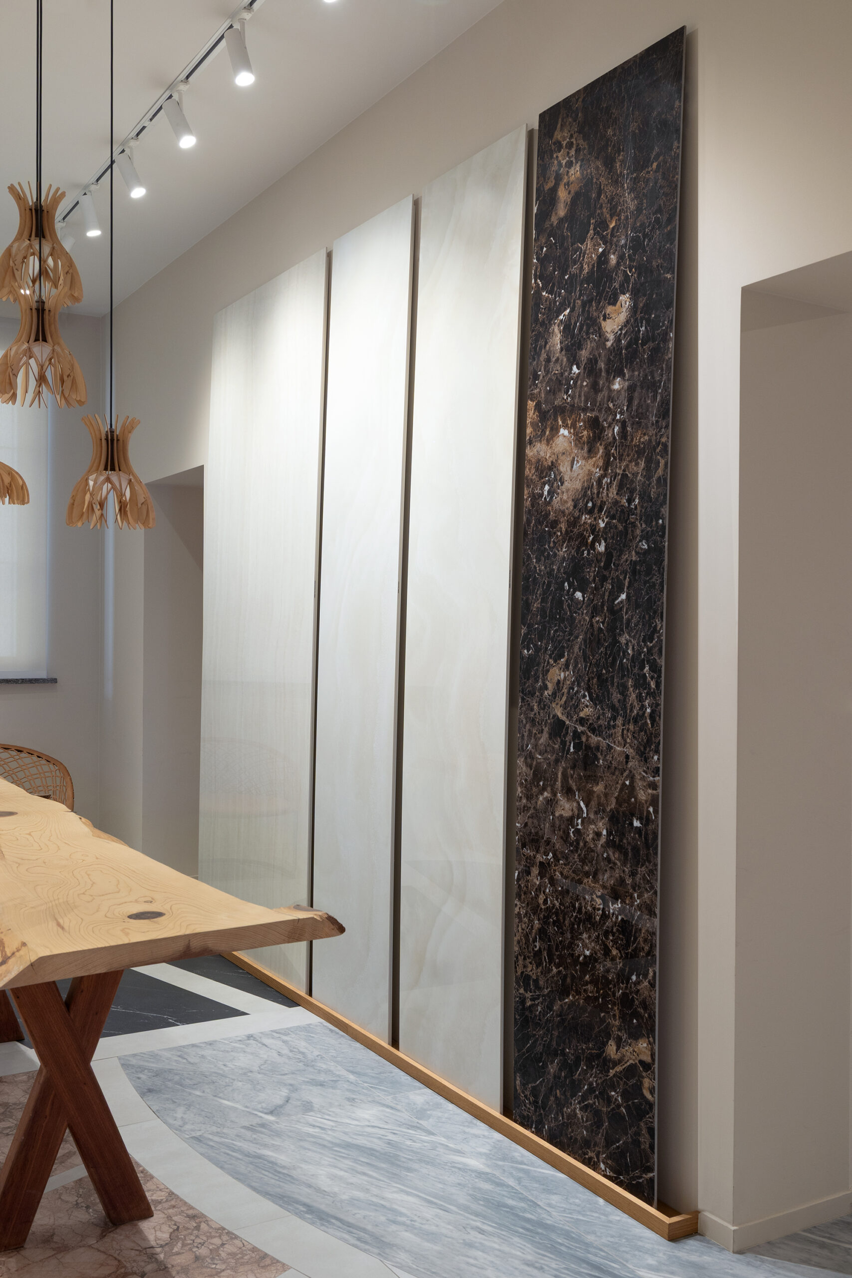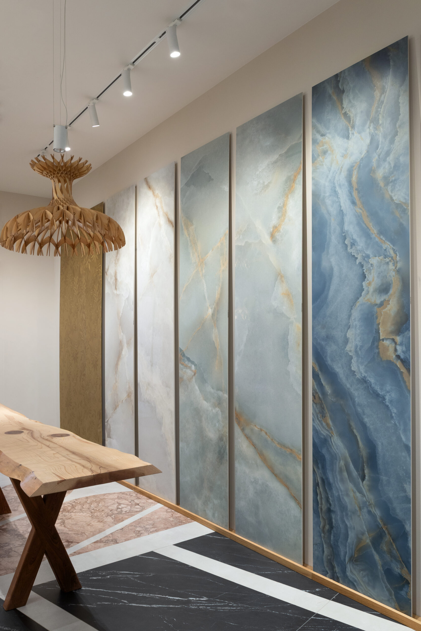 Incanto expands its language with the introduction of five precious onyxes, luminous and sophisticated surfaces that enhance the depth and richness of the material. Nodis, the new wood-effect collection, delivers a natural and balanced sensation, designed for warm and contemporary spaces. Realstone Classica, the new stone-effect collection ideal for indoor and outdoor spaces, expresses essential materiality, while Solida reinterprets the charm of terracotta with a contemporary language.