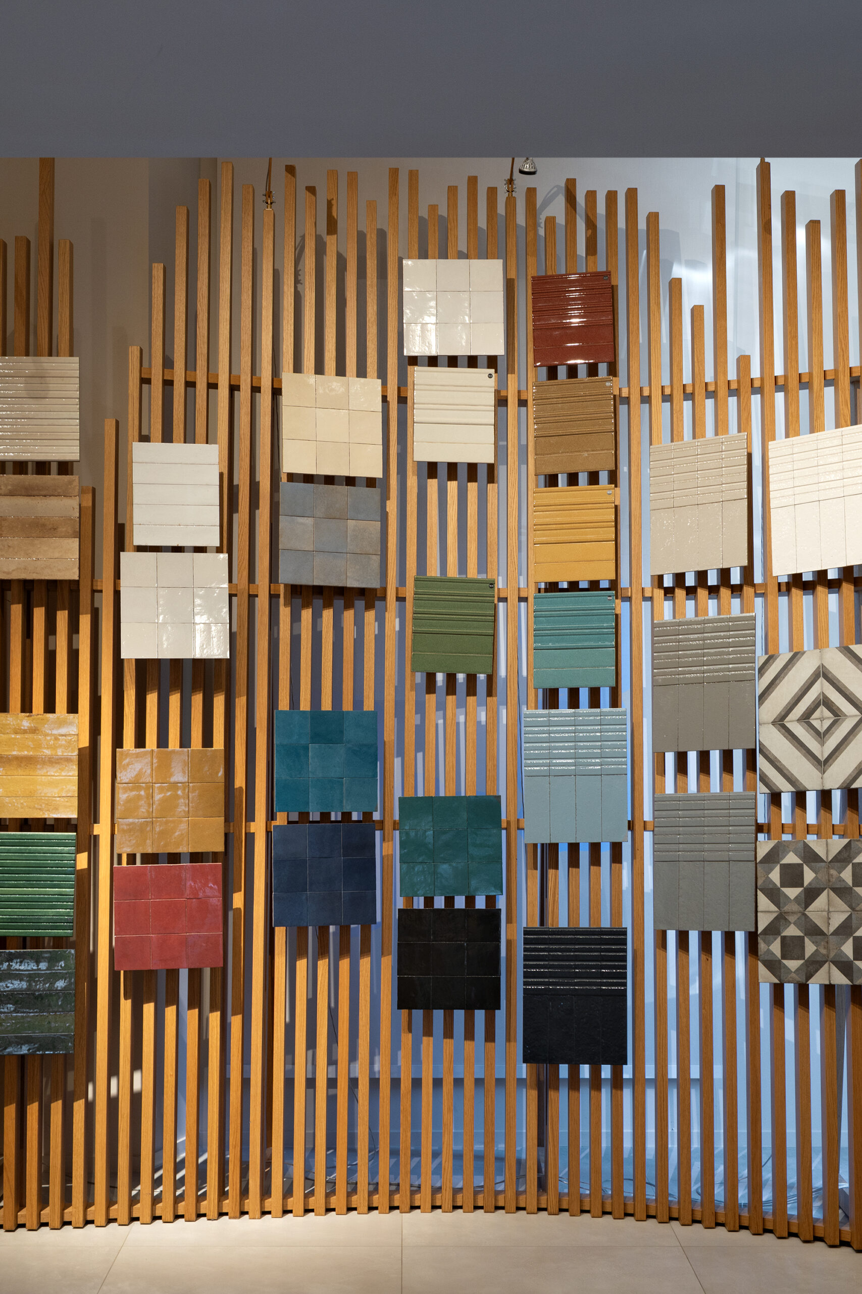 The ceramic surfaces interpret colors and textures with a warm, contemporary aesthetic, shaping rooms rich in nuances.