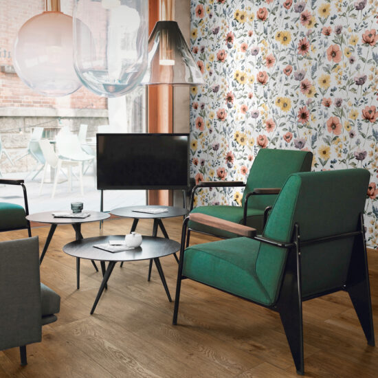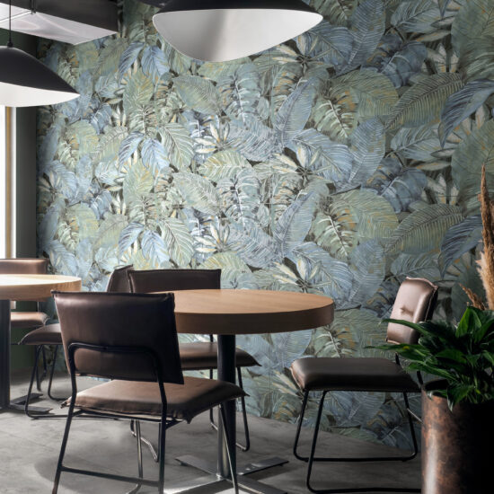 Branch and Sun for fresh floral design schemes and Bloom for contemporary retro moods, still on a botanical theme. A return to the ‘70s with the geometrically patterned Optical Decor and total immersion in a tropical forest with the Amazonia Decor.
