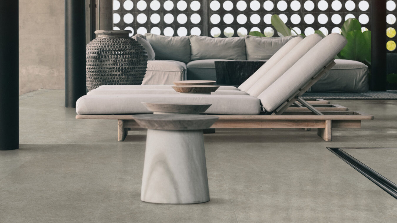 Realstone_Argent provides a neutral base for designers seeking to merge spaces and blur the boundaries between indoors and outdoors and horizontal and vertical surfaces.