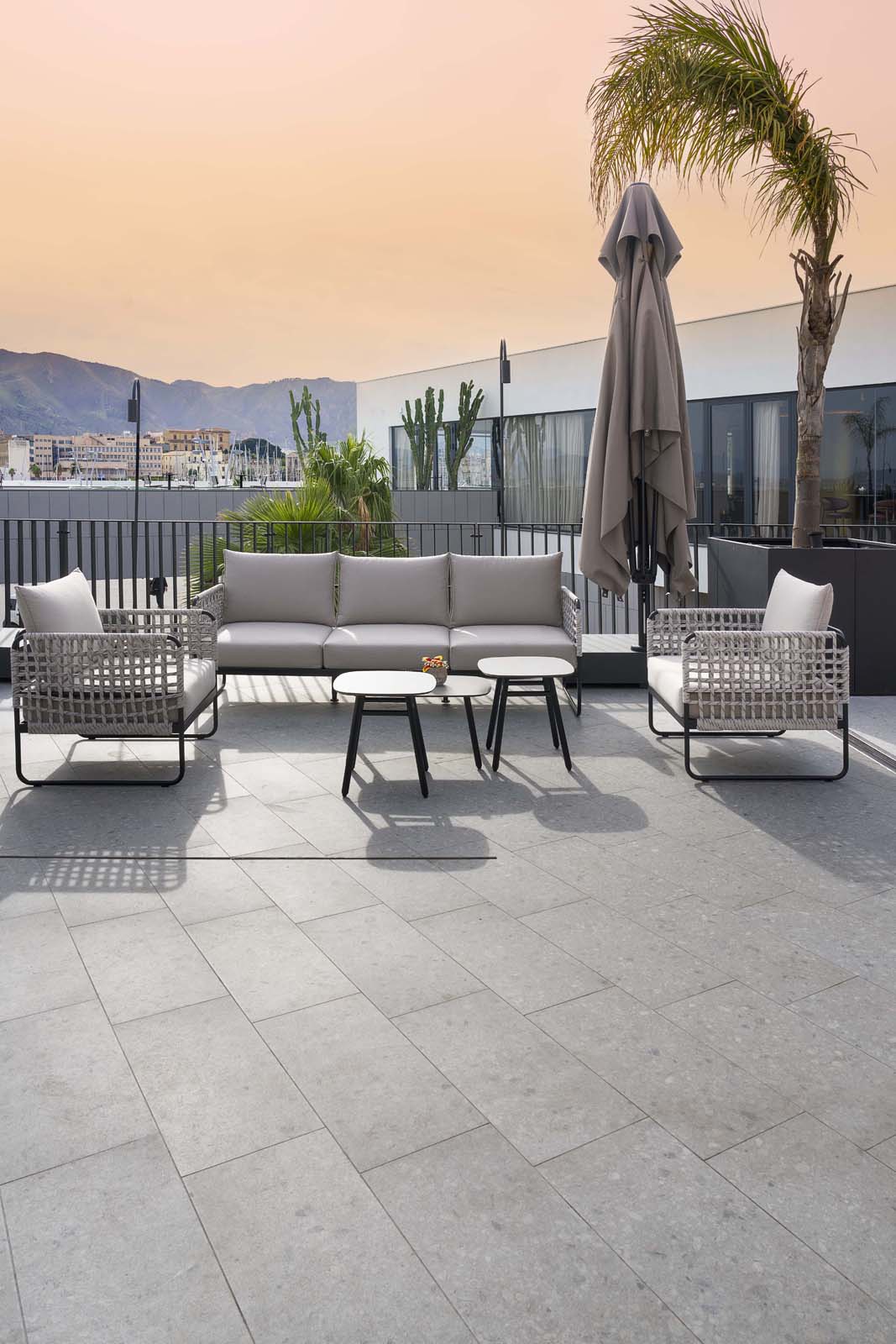 In contrast, the rich patterning and accurate reproduction of Ceppo di Gré stone of Realstone Navigli Grigio Naturale (75×150 cm) was chosen to decorate the retail areas and for the paving of the outdoor area, given its proven resistance to weather and salt spray and also its incorporation of the patented StepWise anti-slip technology. In addition to unprecedented ease of care and cleaning, Realstone Navigli also offers an exciting range of colors and a particularly soft texture.