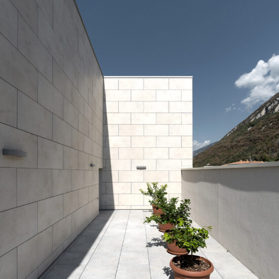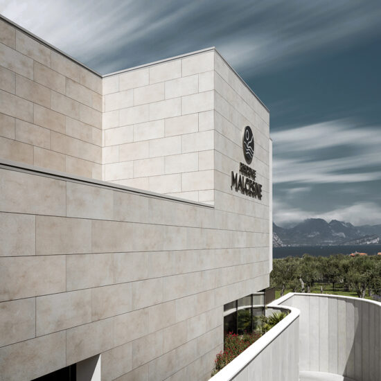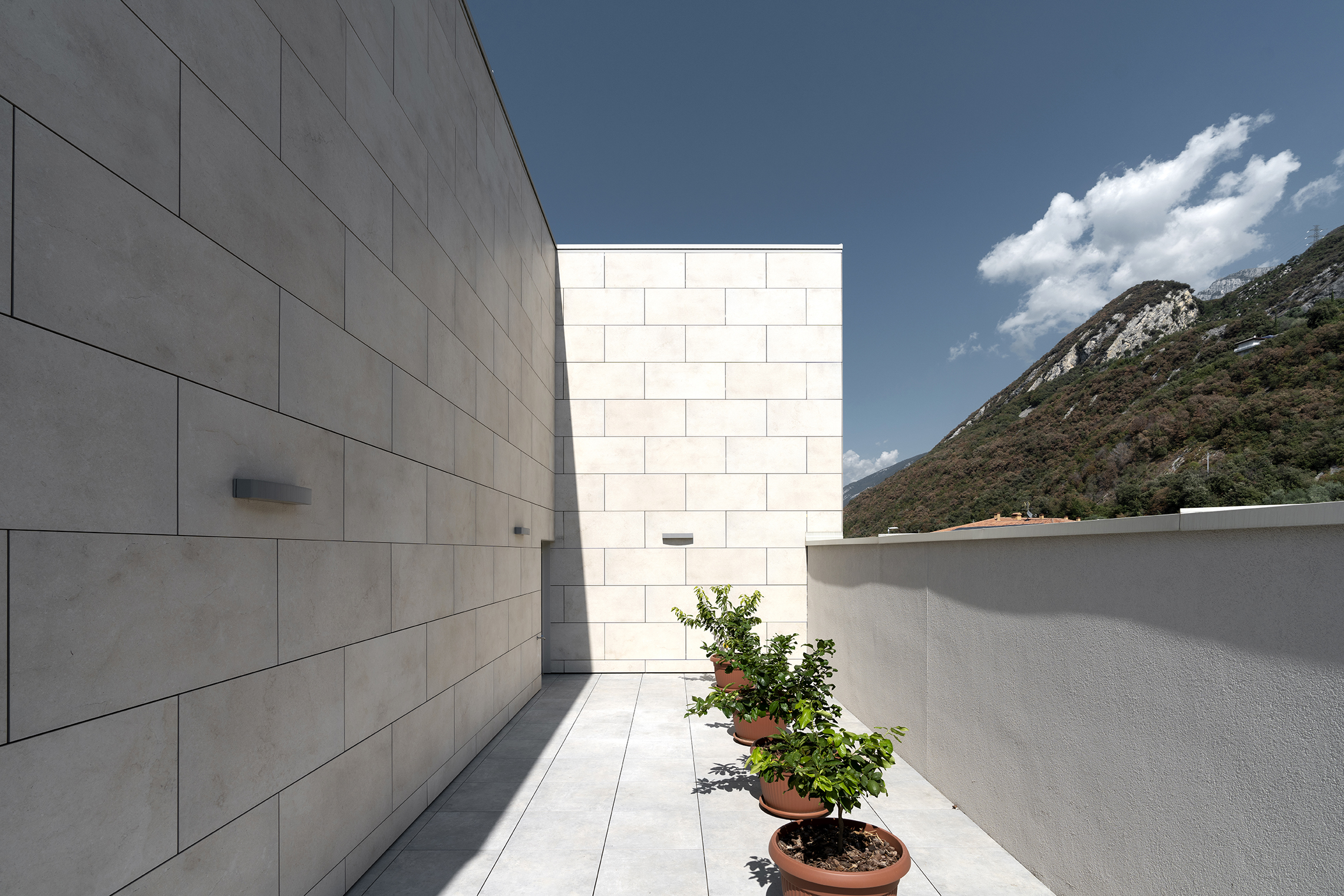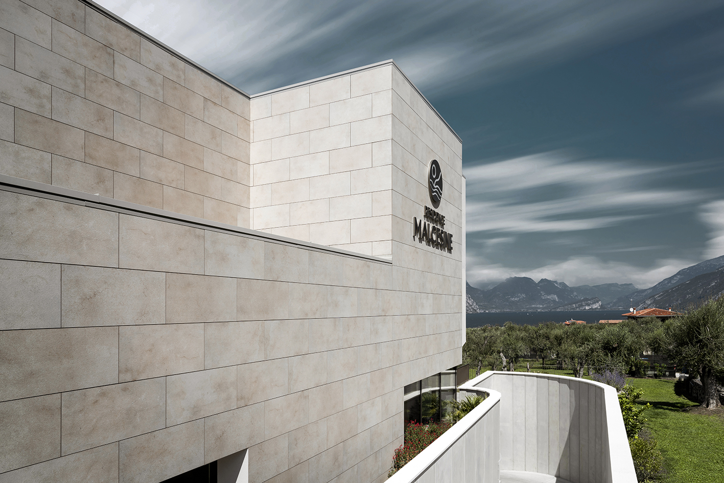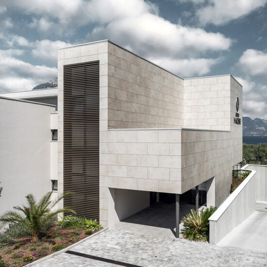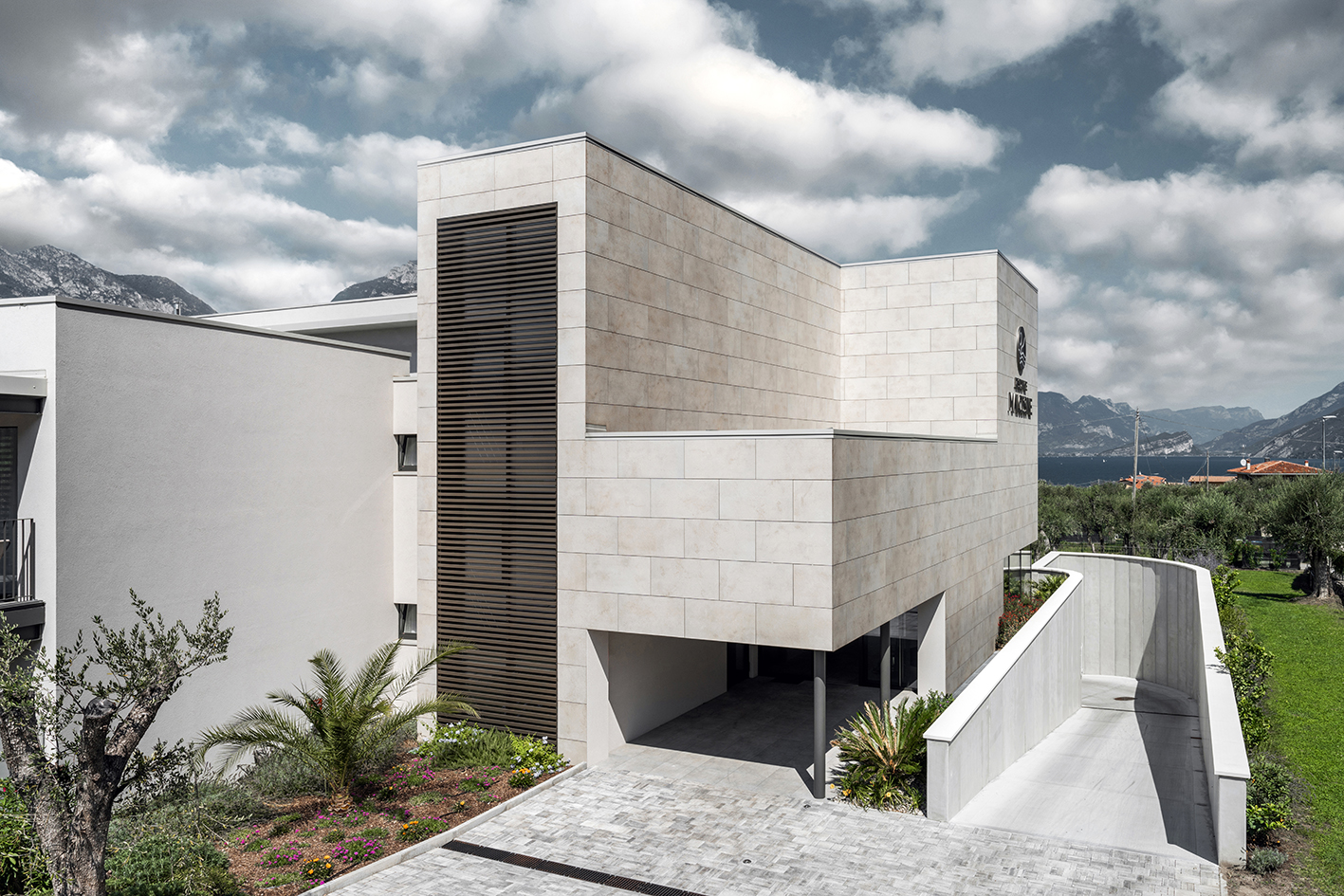 Residence Malcesine, by Lake Garda, features contemporary architecture that references traditional local construction methods. The ventilated walls which form the building’s outer cladding are in Realstone Jerusalem Avorio porcelain stoneware slabs, which not only provide the natural appearance of stone but also boost energy efficiency and comfort levels, within the trend towards more and more sustainable architecture.