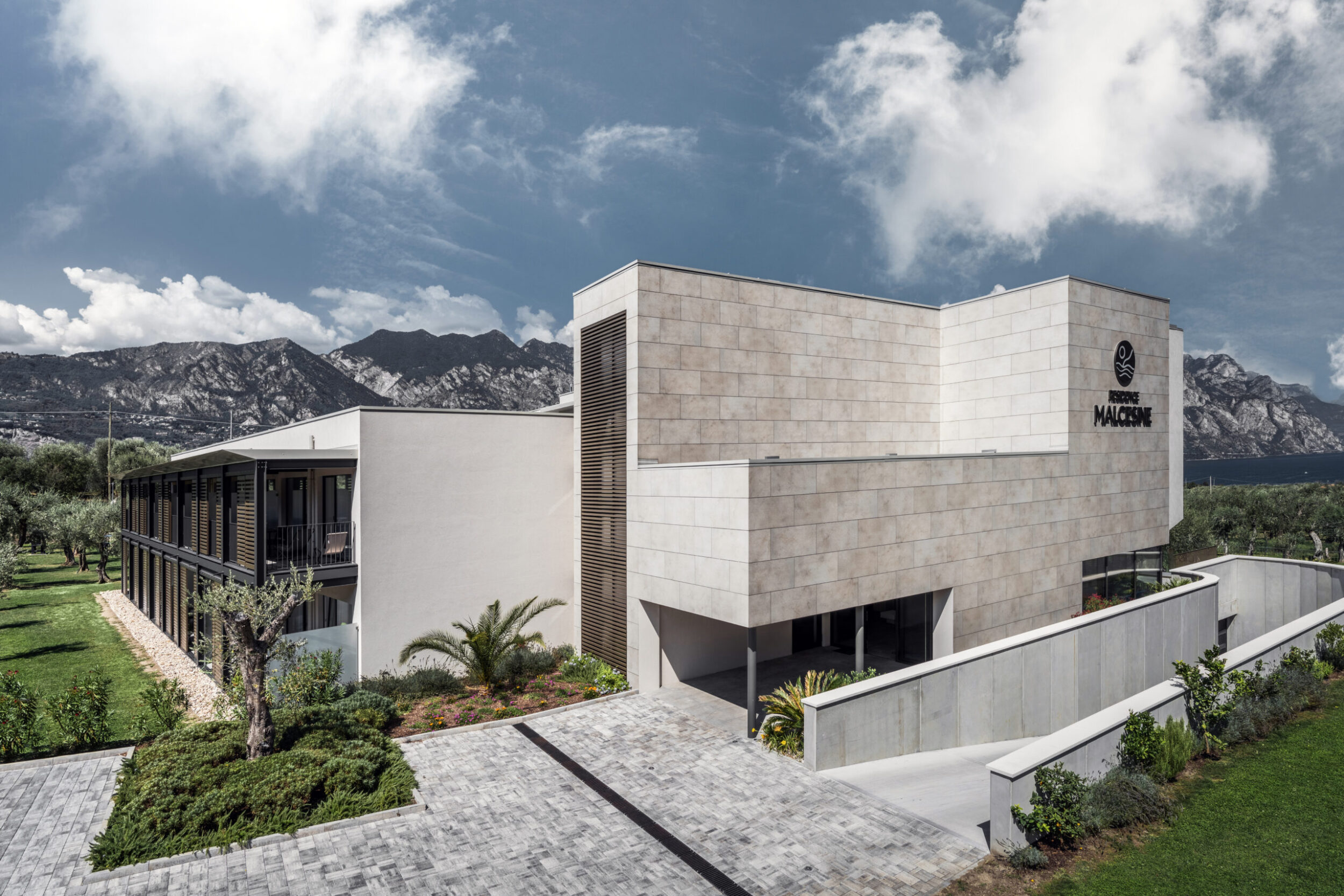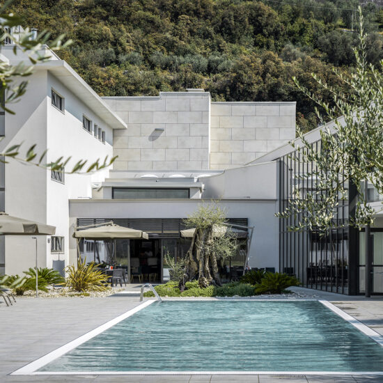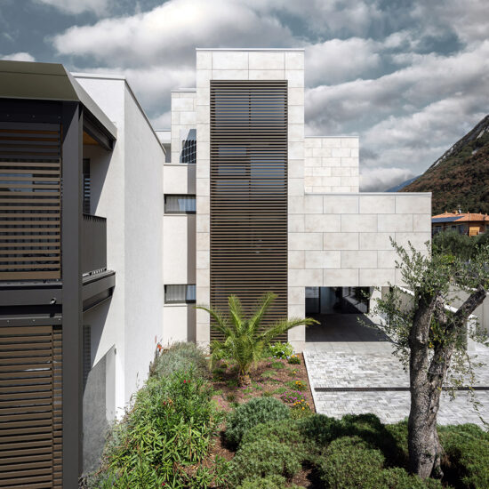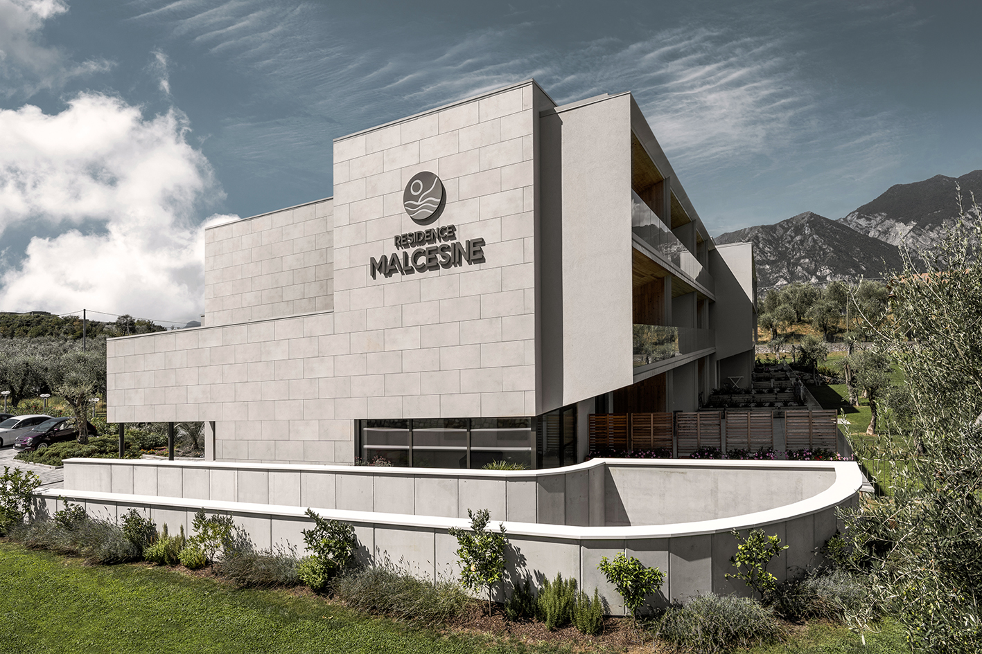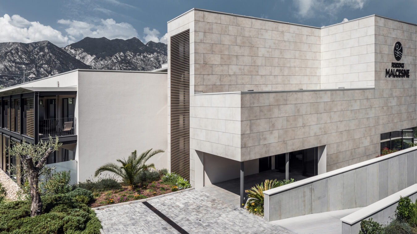 Residence Malcesine, by Lake Garda, features contemporary architecture that references traditional local construction methods. The ventilated walls which form the building’s outer cladding are in Realstone Jerusalem Avorio porcelain stoneware slabs, which not only provide the natural appearance of stone but also boost energy efficiency and comfort levels, within the trend towards more and more sustainable architecture.