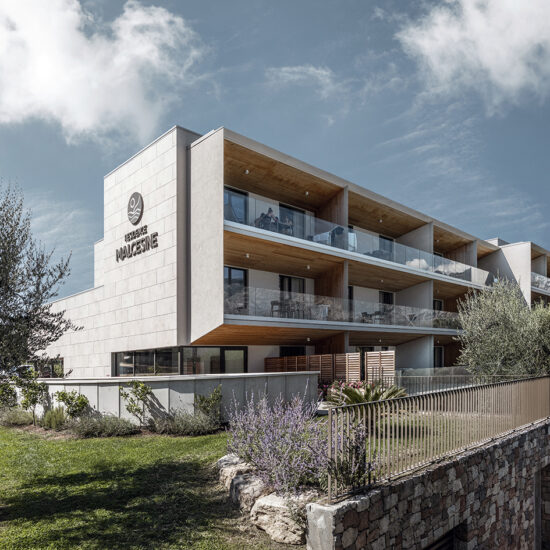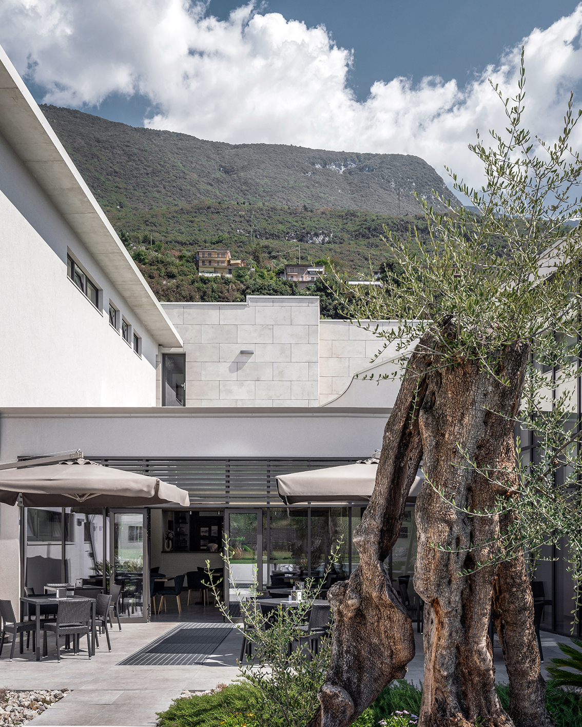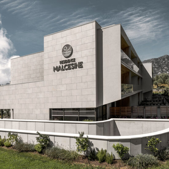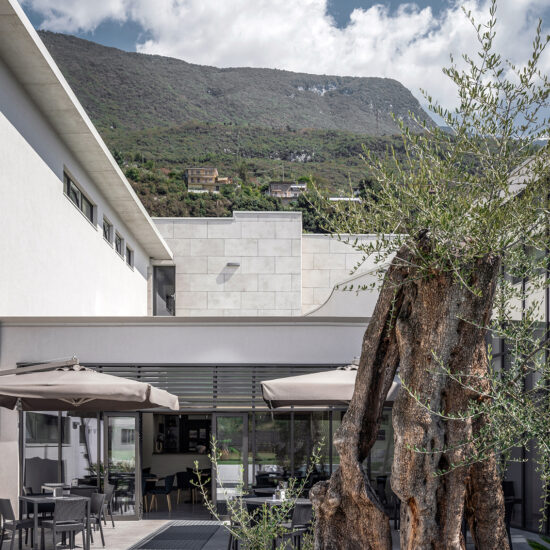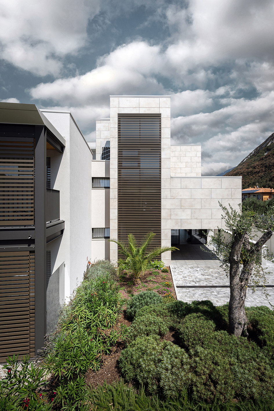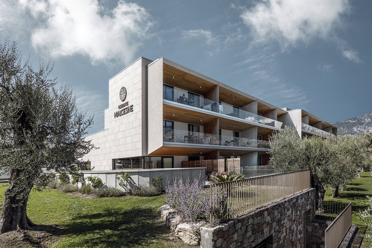 Residence Malcesine, by Lake Garda, features contemporary architecture that references traditional local construction methods. The ventilated walls which form the building’s outer cladding are in Realstone Jerusalem Avorio porcelain stoneware slabs, which not only provide the natural appearance of stone but also boost energy efficiency and comfort levels, within the trend towards more and more sustainable architecture.