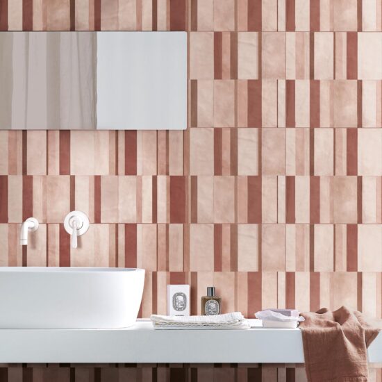 Beginning with the base element, the collection also includes a series of surface texture variations that play around with light and shade and give walls depth, texture and thickness, both visual and tactile. The Bee and Wall structures, which can be laid both horizontally or vertically, create, respectively, a honeycomb pattern formed of hexagons on adjoining tiles and a weave that recalls and offers a modern twist on old walls made of stone or small bricks.