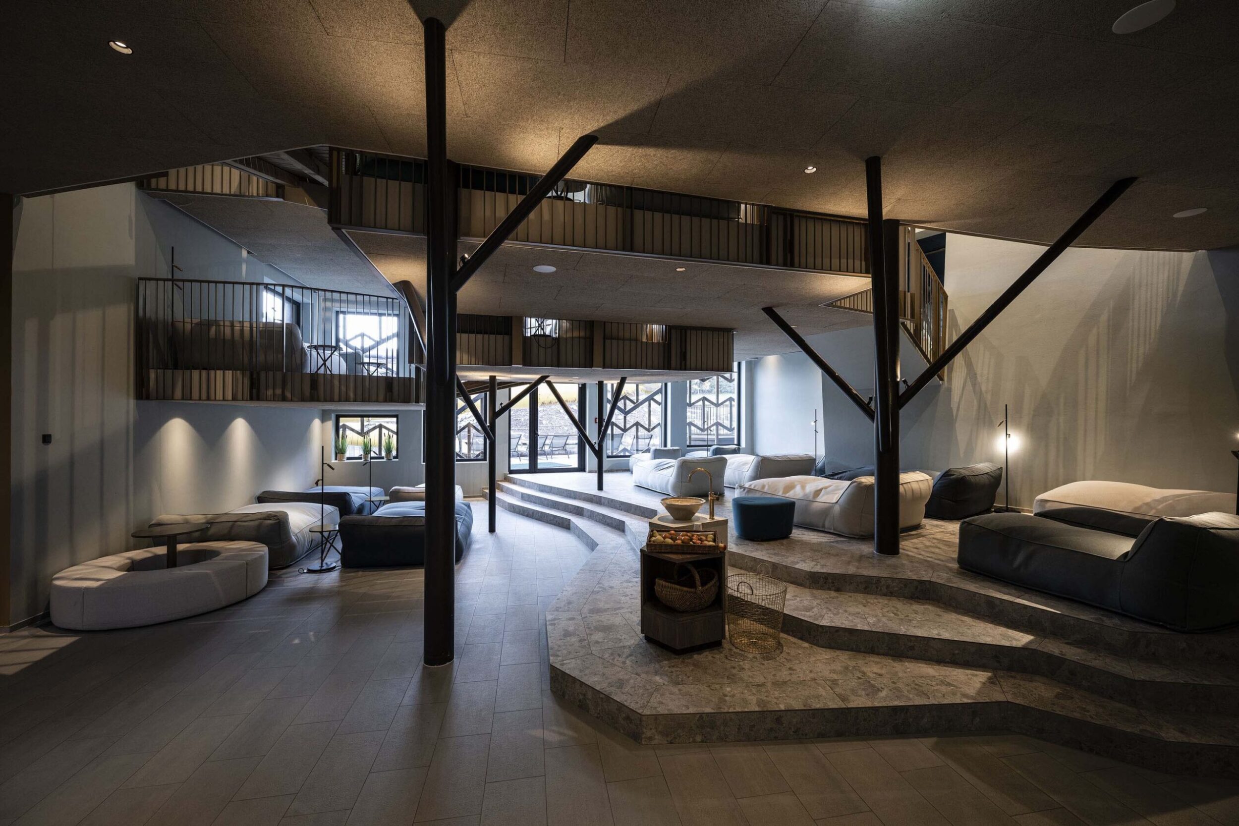 Noa – one of the leading mountain architecture firms – has few rivals when it comes to giving expression to different spirits and intentions. Its architects have once again achieved this with ease – and in this case perhaps with a touch of fun – when renovating the well known Falkensteiner Family Resort Lido at Casteldarne, in the Puster Valley, which specialises in accommodating families with children. The owners, who manage 30 hospitality locations in six adjoining towns, asked the firm to enlarge the facility and add new functions, while maintaining its specific vocation.