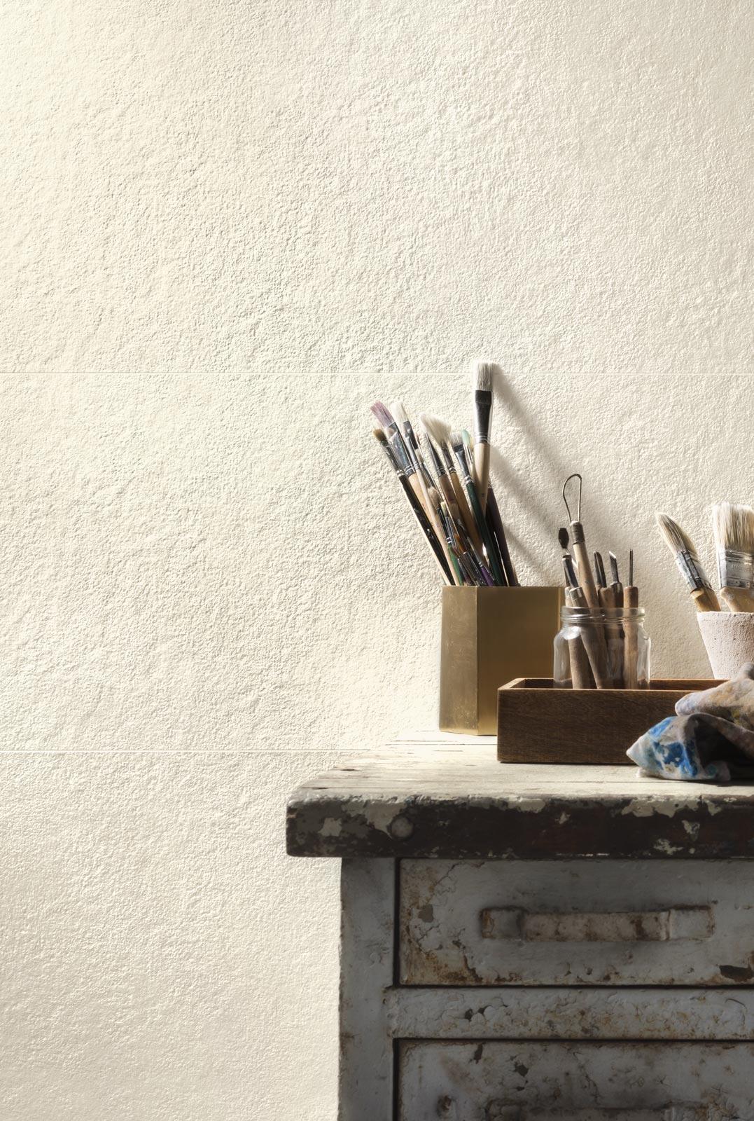 By simply varying the surface texture, four luminous colours evoke a deep bond with the tradition of the finest stonemasons