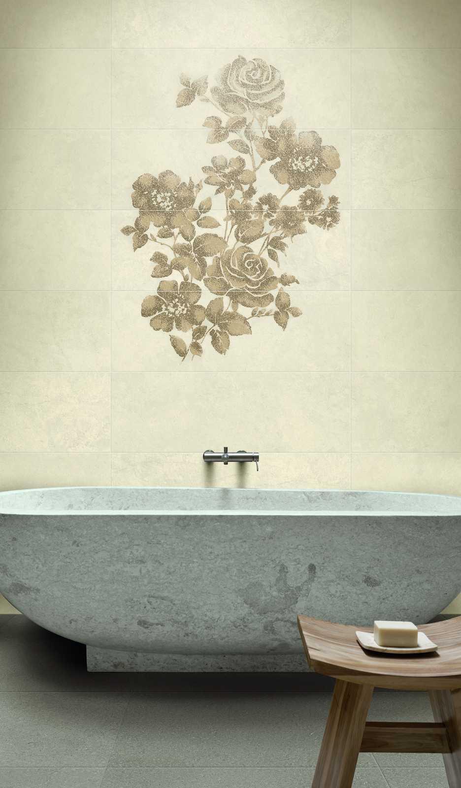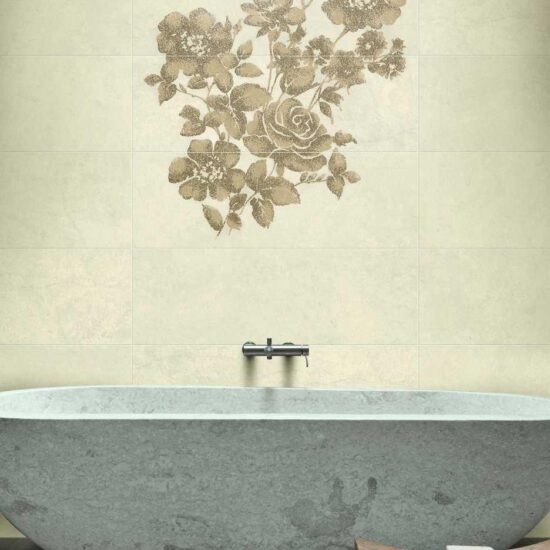 The Ritual collection catalogue is completed by four decors – Bouquet, Cross, Jaquard and Vanity –, available in the Bianco and Avorio colour variants – and the matching mosaic, mesh-backed in modules of 32 x 32 cm.