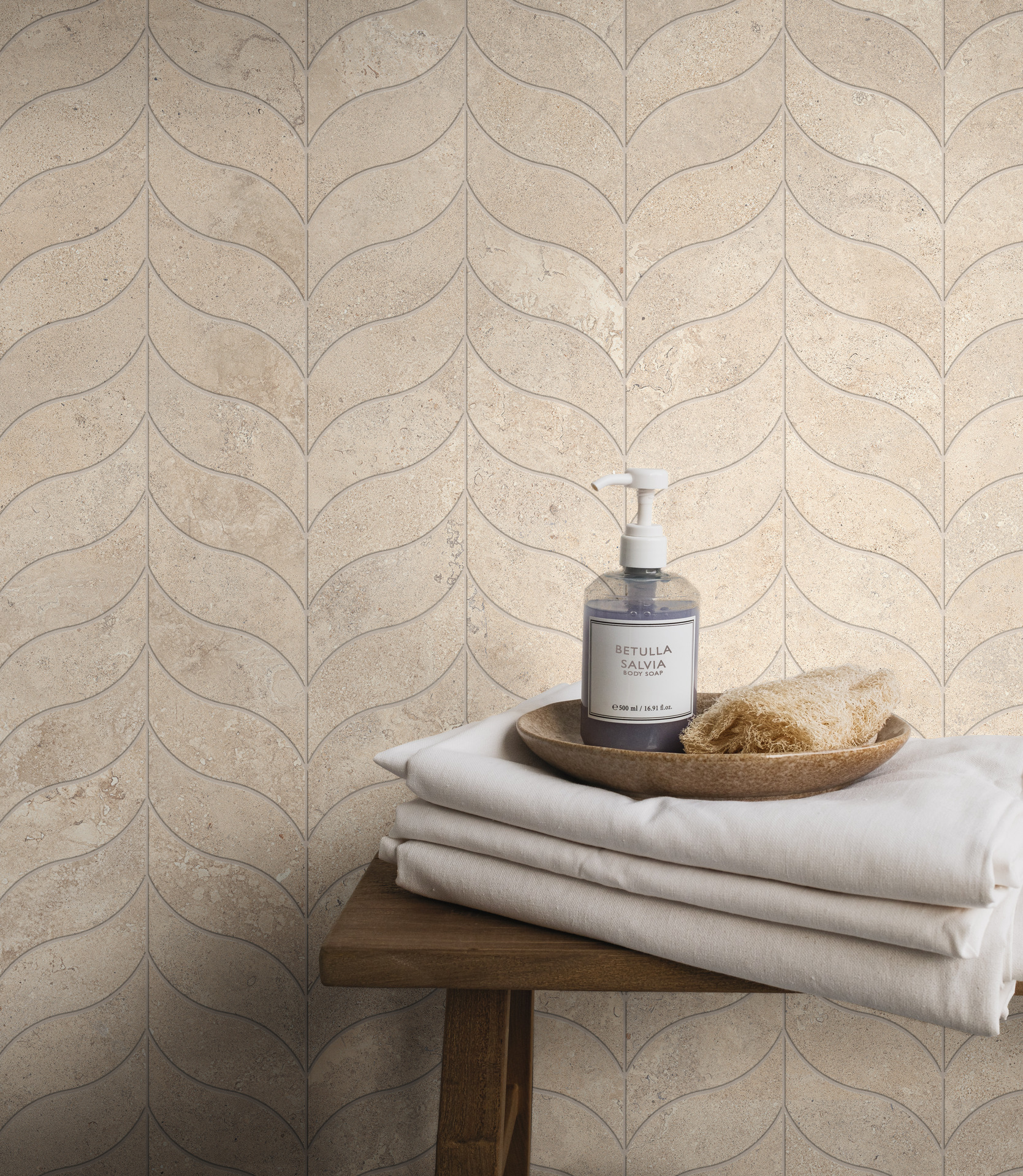 Within the Stoneplay collection, the Cliff variant reinterprets an ancient English limestone from the island of the same name located in Dorset and used in the past for the design of historic buildings, such as the famous St Paul’s Cathedral in London, and later for various public buildings throughout England, including the façade of Buckingham Palace.