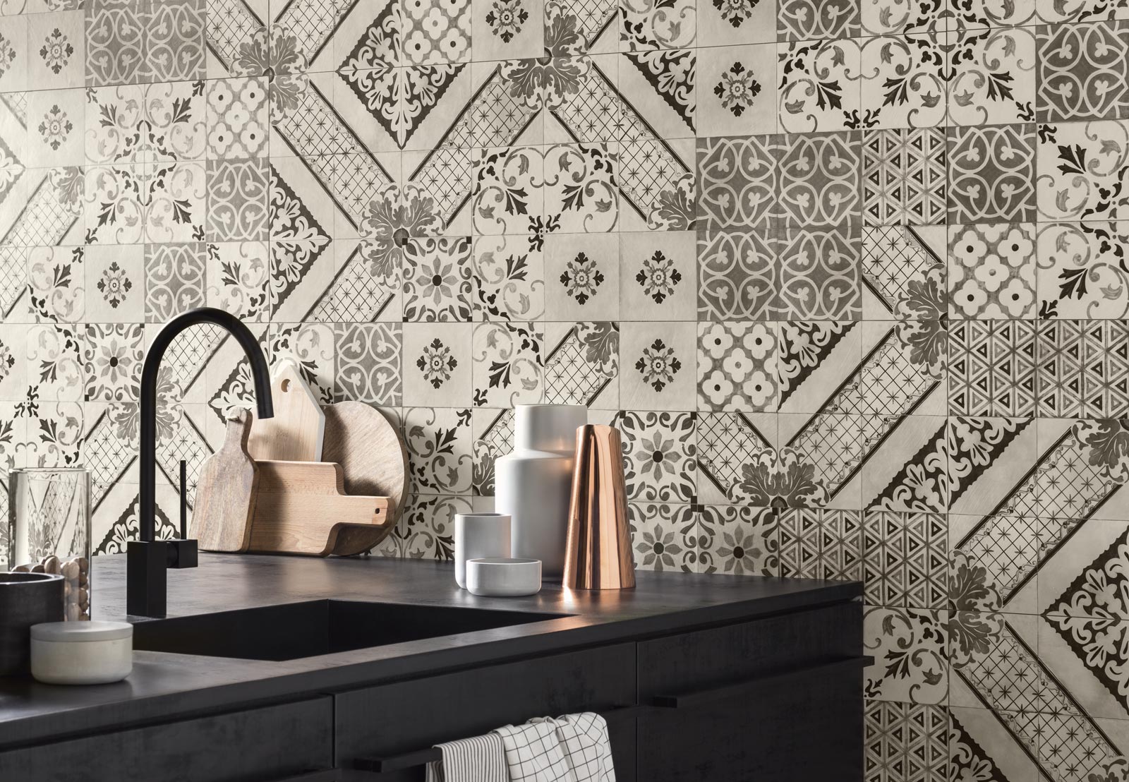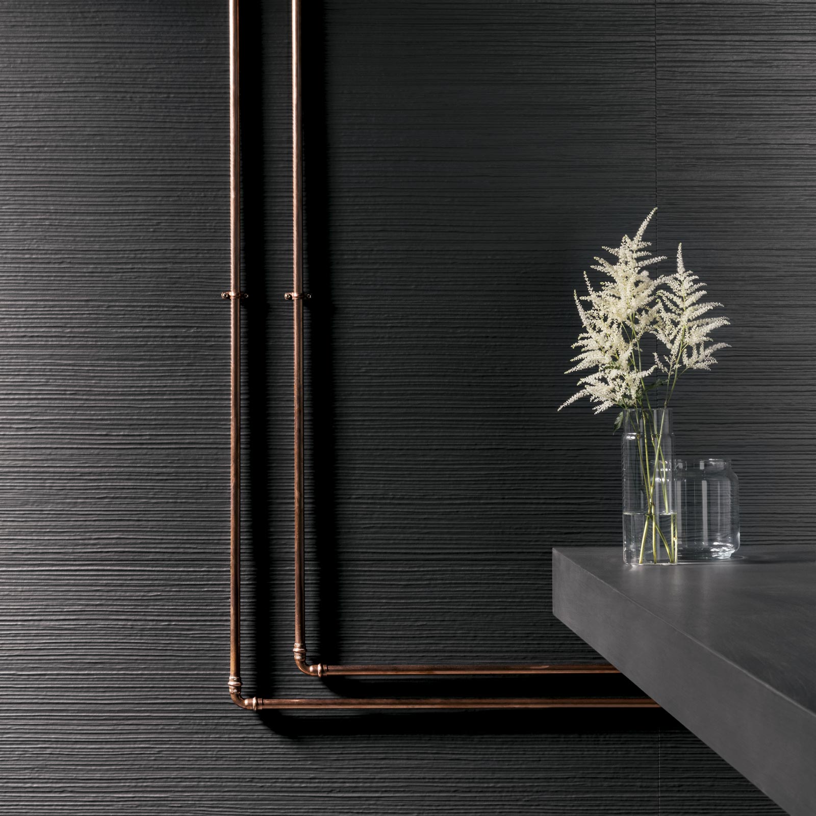 Not that the Tactile collection is lacking in contemporary style: through the Titanio and Carbone colours, the Resina 3D structure, the Shine decor and the Bone mosaic, its homely warmth embraces geometry and a severe elegance, suggesting strict attention to detail and a modernity that does not betray the link to the past.