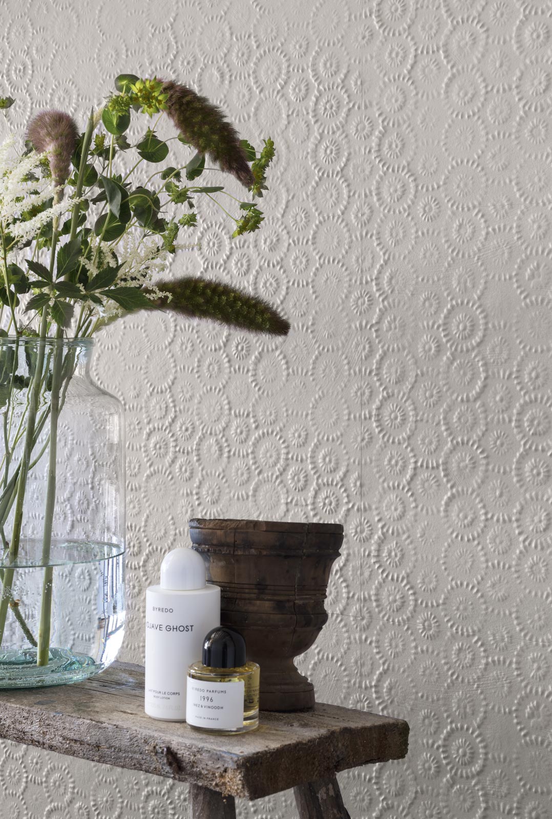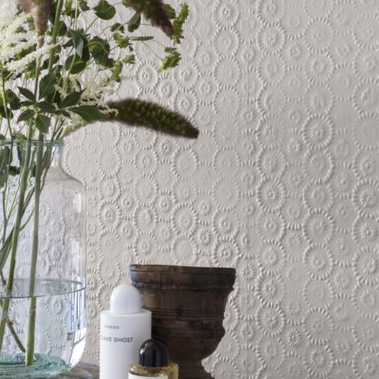 We read this material through touch, and in our minds and hearts an ancient lace pattern reappears on the surface; it is pure, simple and deeply linked, in our own histories, to the cultural and emotional associations of home and family.
