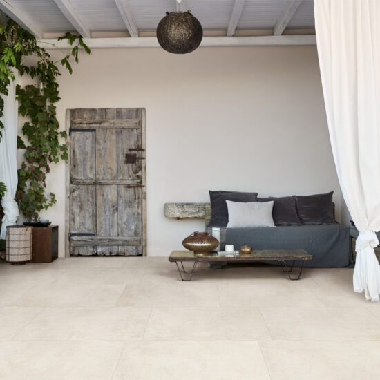 There are seven sizes to choose from for indoor and outdoor use on both floors and walls: 471/4"x471/4" and 235/8"x471/4" in a 6 mm thickness and 291/2"x591/6", 291/2"x291/2", 235/8"x235/8" and 1113/16"x235/8" in a 10 mm thickness. The collection is completed by the 81/4"x73/16" hexagon shape – ideal as a decorative plain tile – and the extra-thick 20 mm Outdoor XT version in the 235/8"x471/4" size, ideal for outdoor flooring.