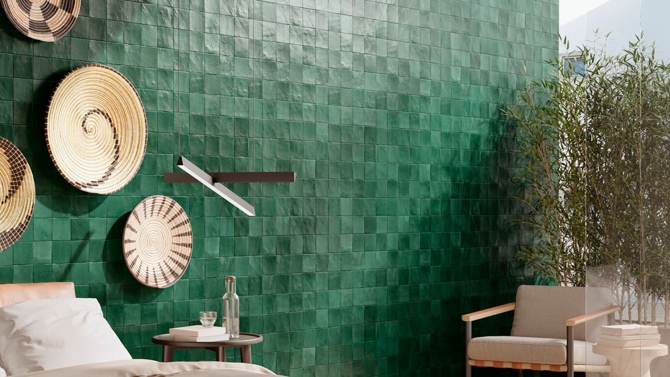 The colours and light of handmade Moroccan tiles conveyed with intriguing modernity in the new Mélange collection: nine intense colours in a single size, designed to create soft, enveloping patterns on walls.