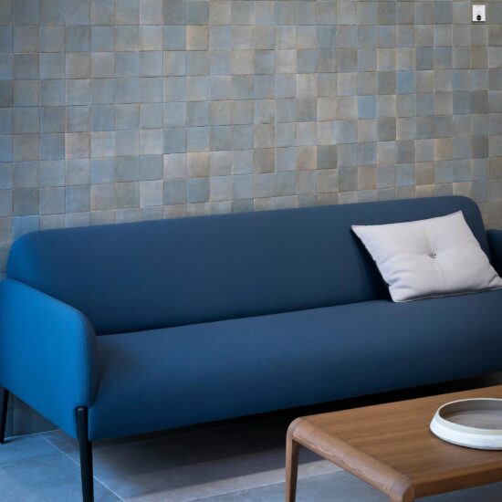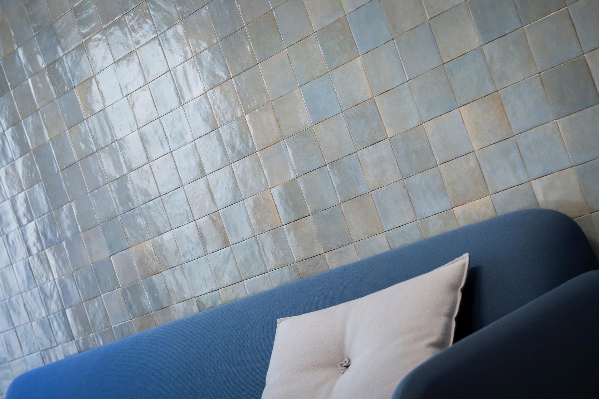 The 10×10 size, offered in no fewer than nine colours with names powerfully evocative of a precise mood (Oltremare, Acquamarina, Bianco, Bordeaux, Beige, Teal, Kaki, Glicine, Nero) creates a pattern on walls that is regular yet dynamic at the same time.