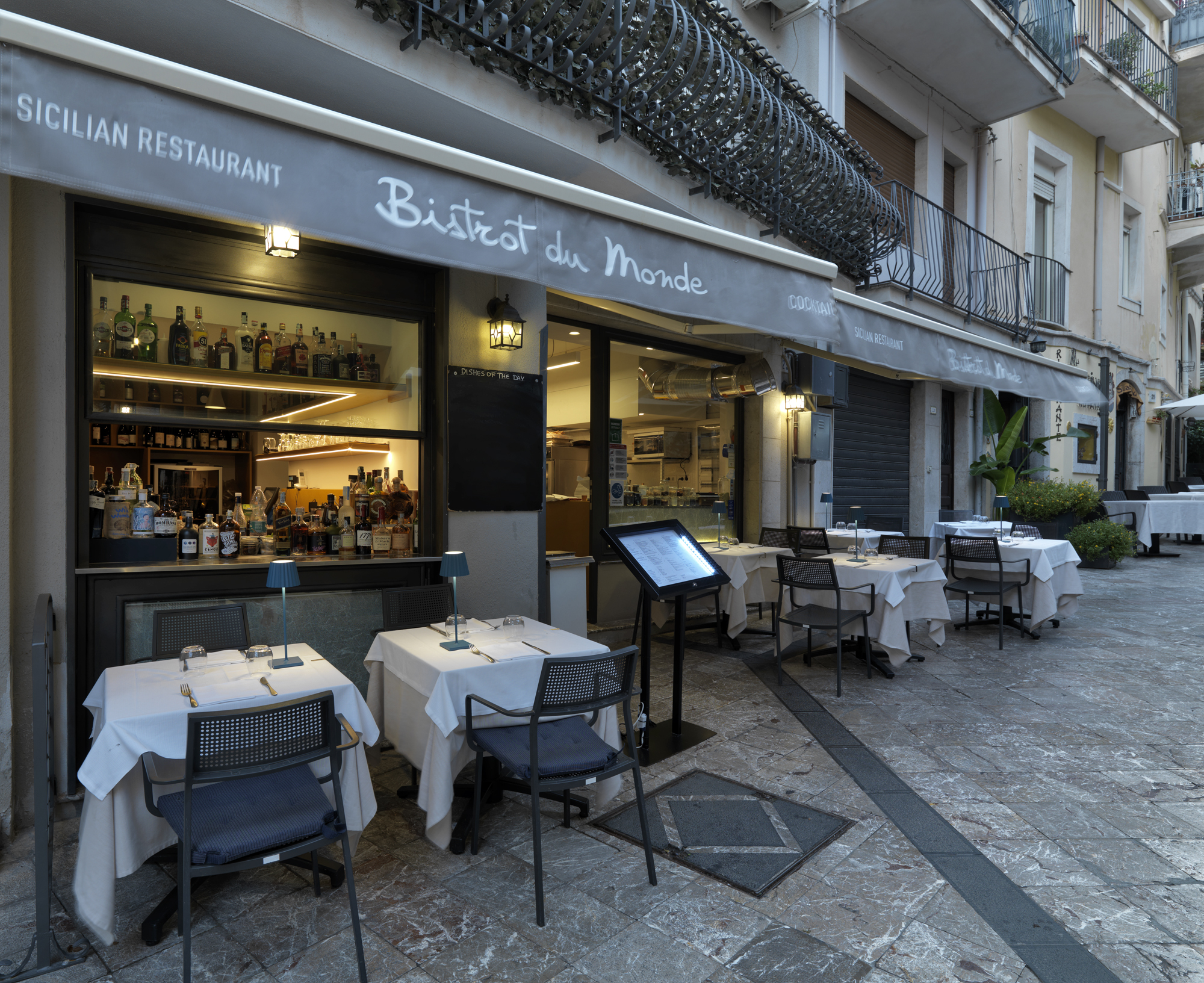 The ‘Bistrot du monde’ restaurant is located in Taormina, in the pedestrian area of the town centre of Greek-Roman origin, a 19th-century Grand Tour destination and treasure trove of millennia of Mediterranean history.