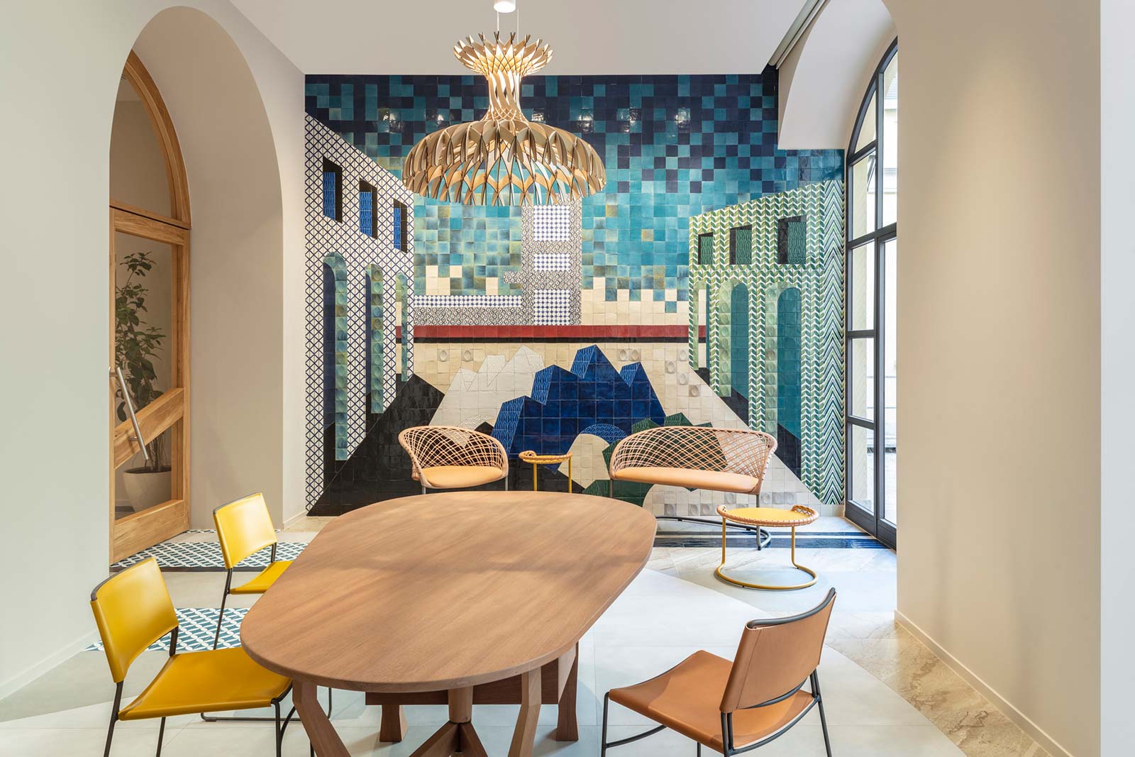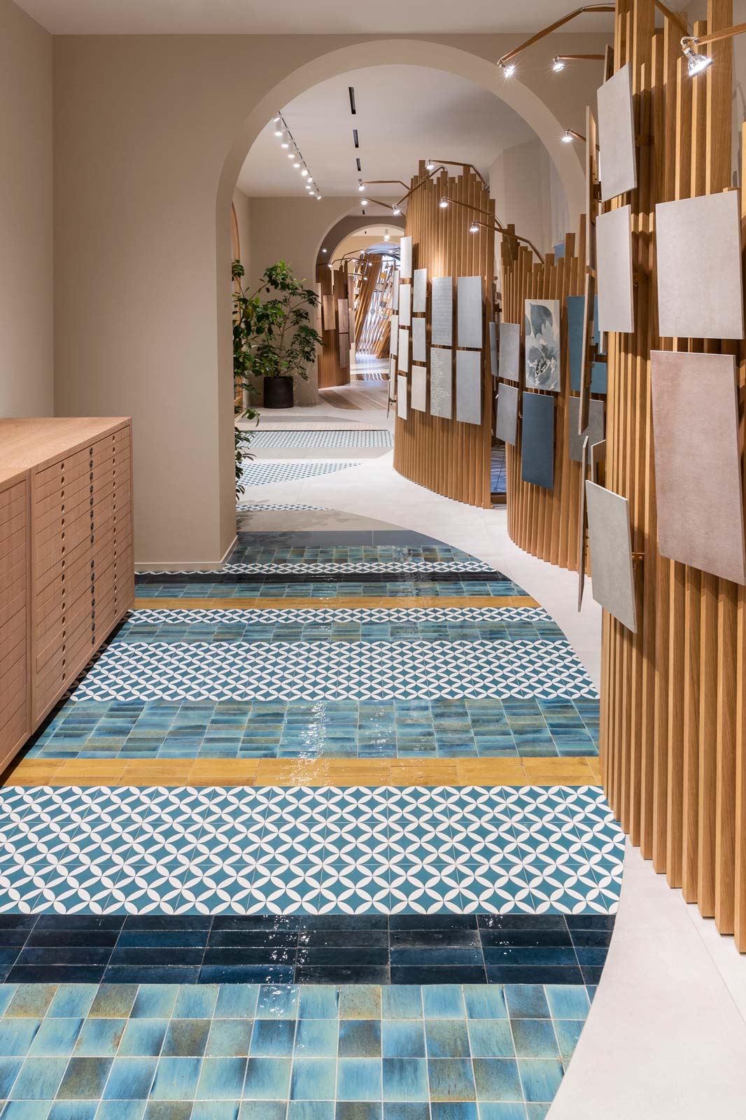 Designed by Benedetta Tagliabue – EMBT, the showroom is a kaleidoscope of colors, textures and patterns that provide an eye-catching account of the brand’s history and technical capabilities, demonstrating all the expressive potential of ceramics.