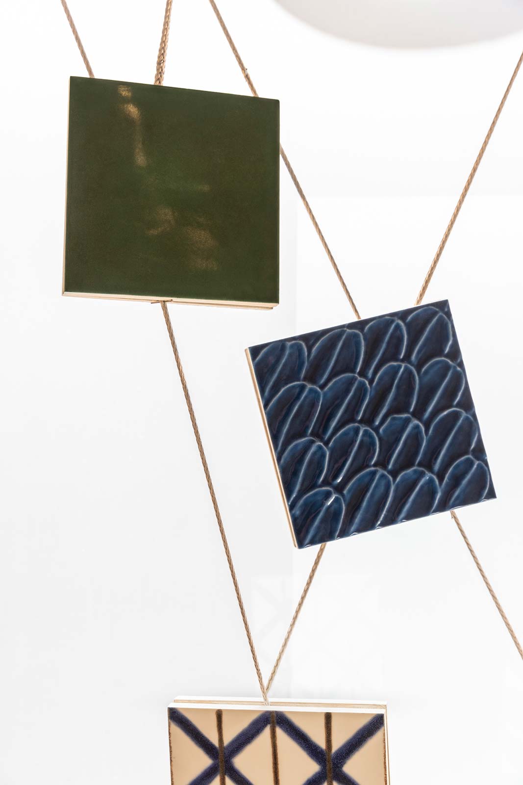 The central feature of the exhibit, the materials library, constitutes a genuine tribute to the brand. “The idea of displaying the Ragno collections by means of large structures resembling a spider’s web came to us from the history of the company, which used a stylised spider as its first trademark,” Benedetta Tagliabue comments. “Given the wide range of collections, we were able to decorate this web, which is nothing more nor less than a real materials library, with different colors and finishes, and to tell a truly unique, fascinating story throughout the whole interior.”