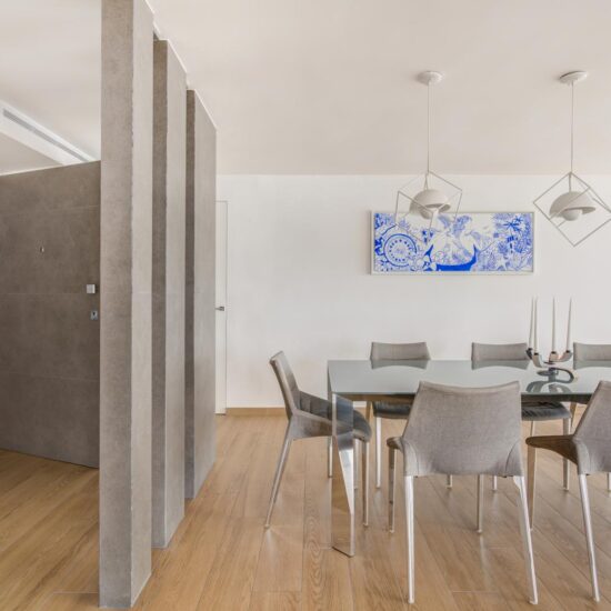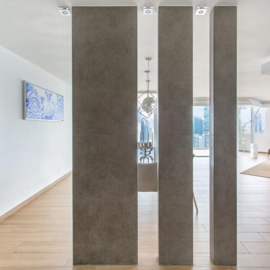 Landscape, in Antracite colour and 60×120 cm size, has also been chosen as the covering for the whole of the atrium and for the three blocks which divide the lounge from the entrance corridor.