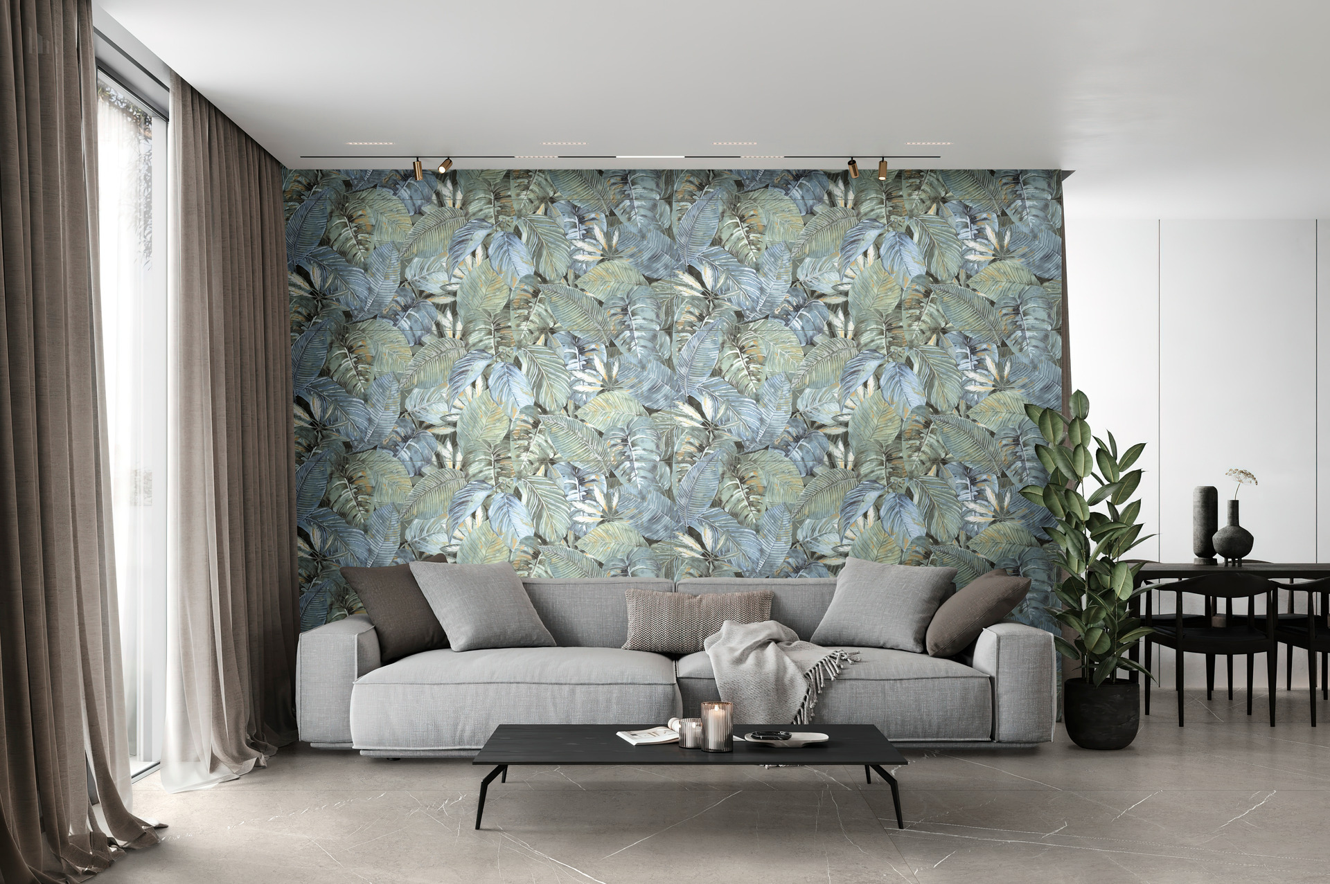 A ceramic wall covering with a wallpaper effect is a surface that faithfully reproduces the patterns and motifs of traditional wallpaper, but with the technical performance of porcelain stoneware or ceramic.